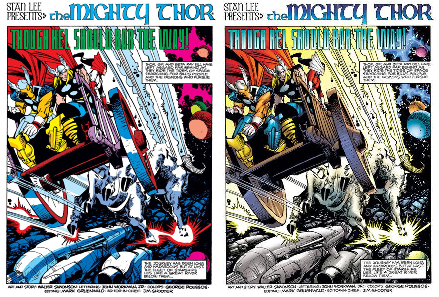 >>150964879>Walt Simonson Thor—wammo.But Walt Simonson Thor in modern colors is on the right side of the image in >>150957505 and it looks bland compared to the image on the left.