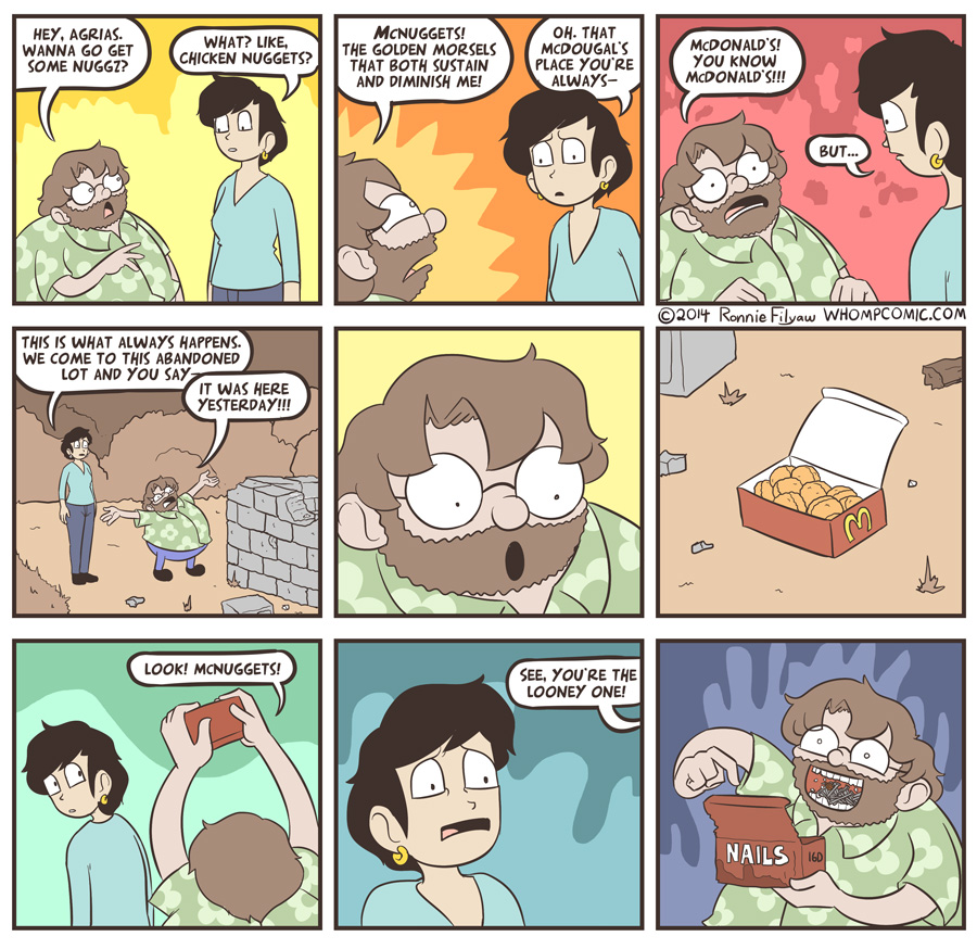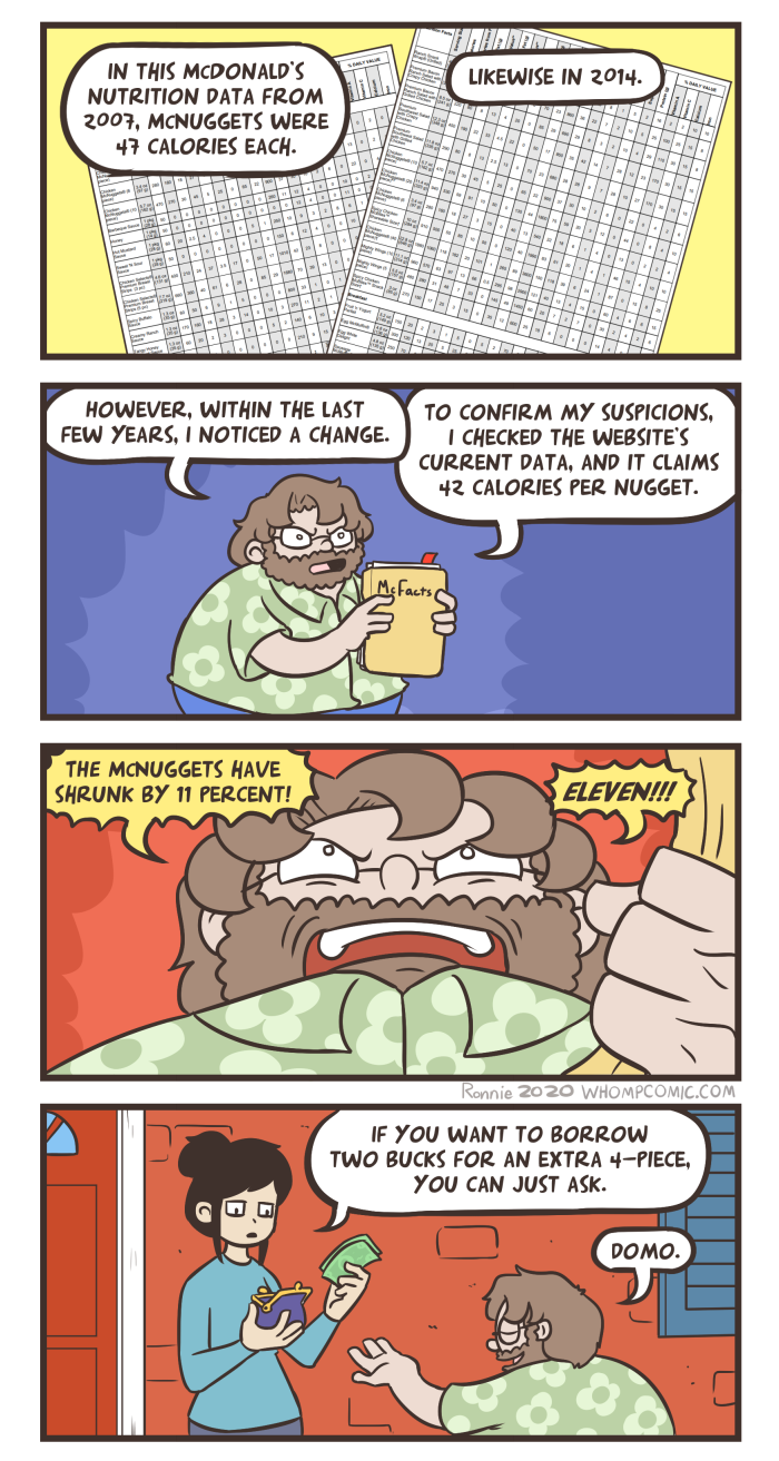 Please allow me to dispel more misconceived notions of myself. I am not terribly fond of McNuggets. It is a foolish treat for a foolish fiction! I much prefer tender, breaded chicken bites fresh from the oven. No deep-frying for this real boy! A skeleton of bone and body of flesh? Perish the thought. I am a construct of steel and rubber sent to sadden the humans. It seems I have succeeded thoroughly.