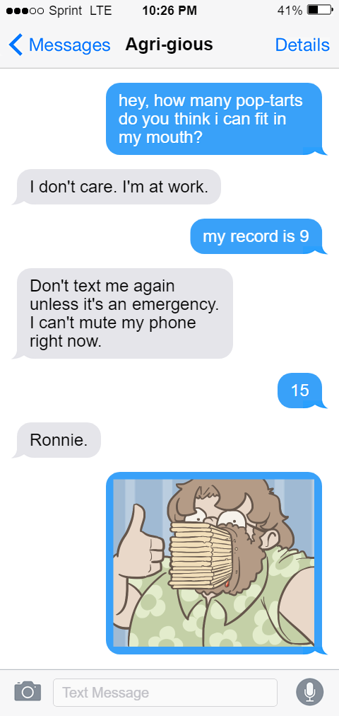 Can u post the one when agrias was moved out and they were on talking on the phone about how Ronnie learned to multitask? It was something like brushing his teeth while in shower and ended with him taking a dump while talking lol . Saw that a long time ago and think of it when doing stuff like that