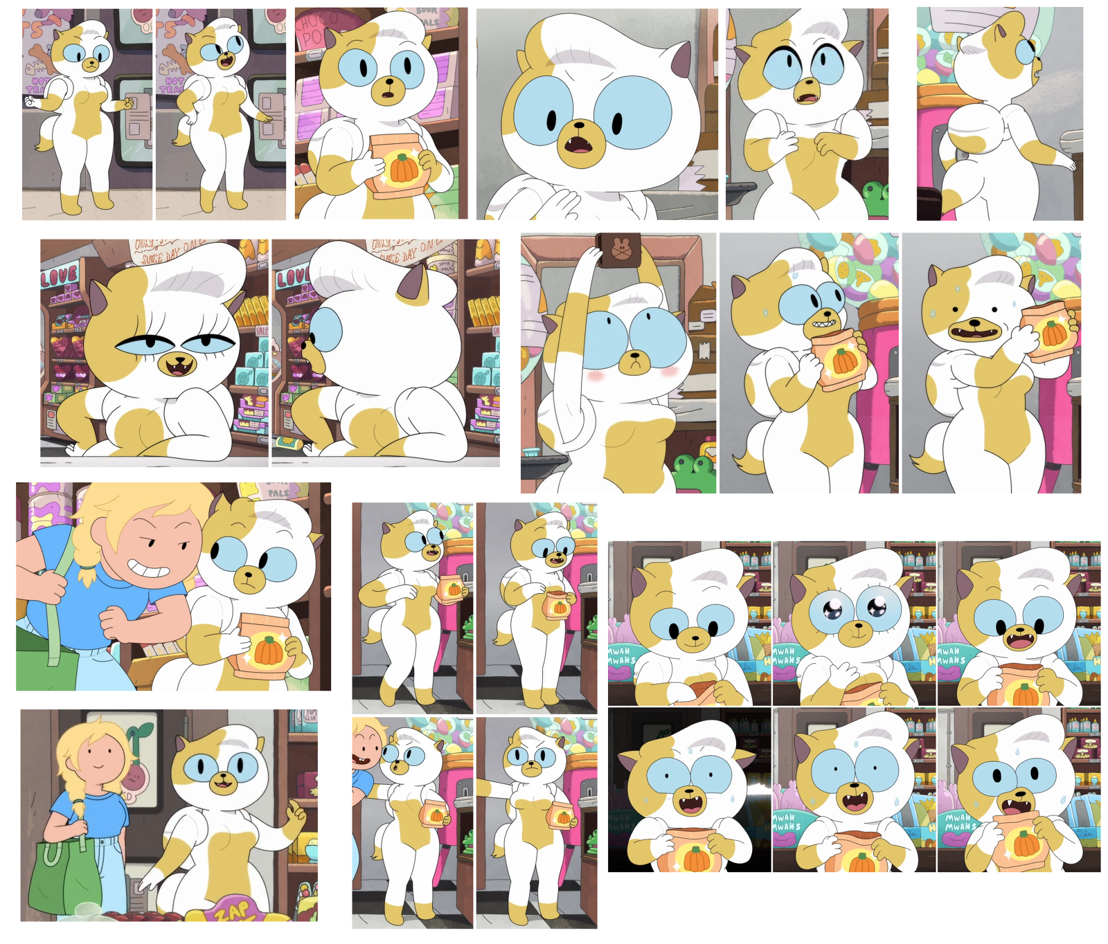 >>150997523>human monochrome frowns at fionna and moves the candy away from her grasp>smiles at cake and hands her the candy instead>he later gives his phone number to cake too>and since he's mute that's a direct line to his ability to "talk" he's 100% down for getting it on with a talking cat, but is he ready for when cake goes feral on him and grows big to snu snu him