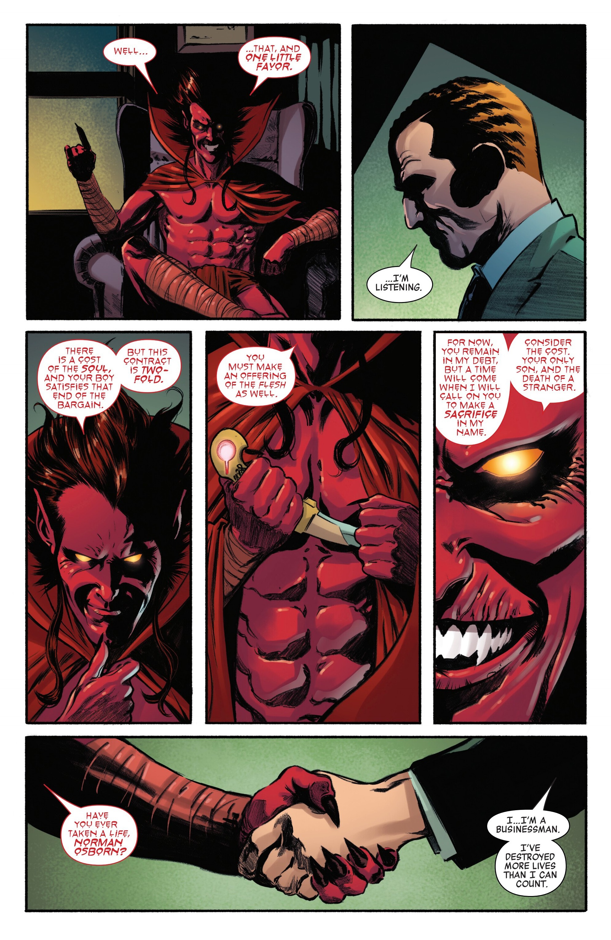 >>150995312I have a lot of mixed feelings about this story. First of all, it hinges on another story where Norman did something completely out of character. There is no way that karen, who is somehow both neglectful and a possessive helicopter parent, would ever sacrifice Harry. Memory loss or not, Norman treats Harold Theopolis Osborn like his personal brand. Not even Harry gets a say. He cares more about legacy than his entire company and he’s arrogant enough to believe he could make money some other way if he had to. That part makes no sense. On the other hand, I hate that Mephisto is involved again, but Norman tossing some poor employee to the knife and getting cozy with demonic nonsense is exactly the kind of crap he lives for. He eats that up. So yes, it’s weird shit, but it’s his kind of weird shit.
