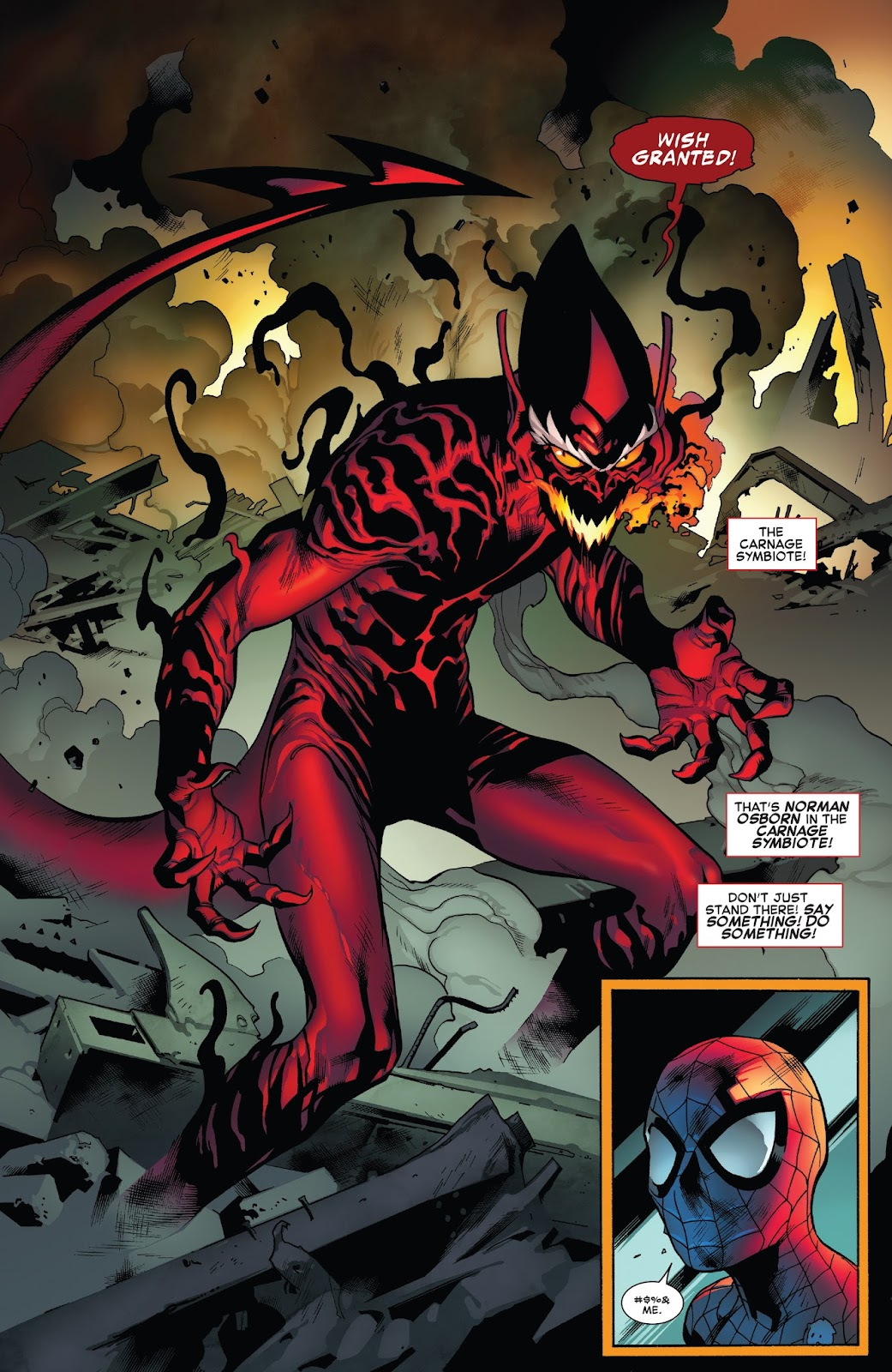 >>150991403Carnage doesn't just kill for fun. It's about taking delight in not just the death of a person but to sew madness into everyday life. Burning buildings, shrieks of terror, anarchy and disarray taken to the most destructive of levels. Which is a fine foil to Spider-Man because chaos is the last thing he wants to worry about in his life