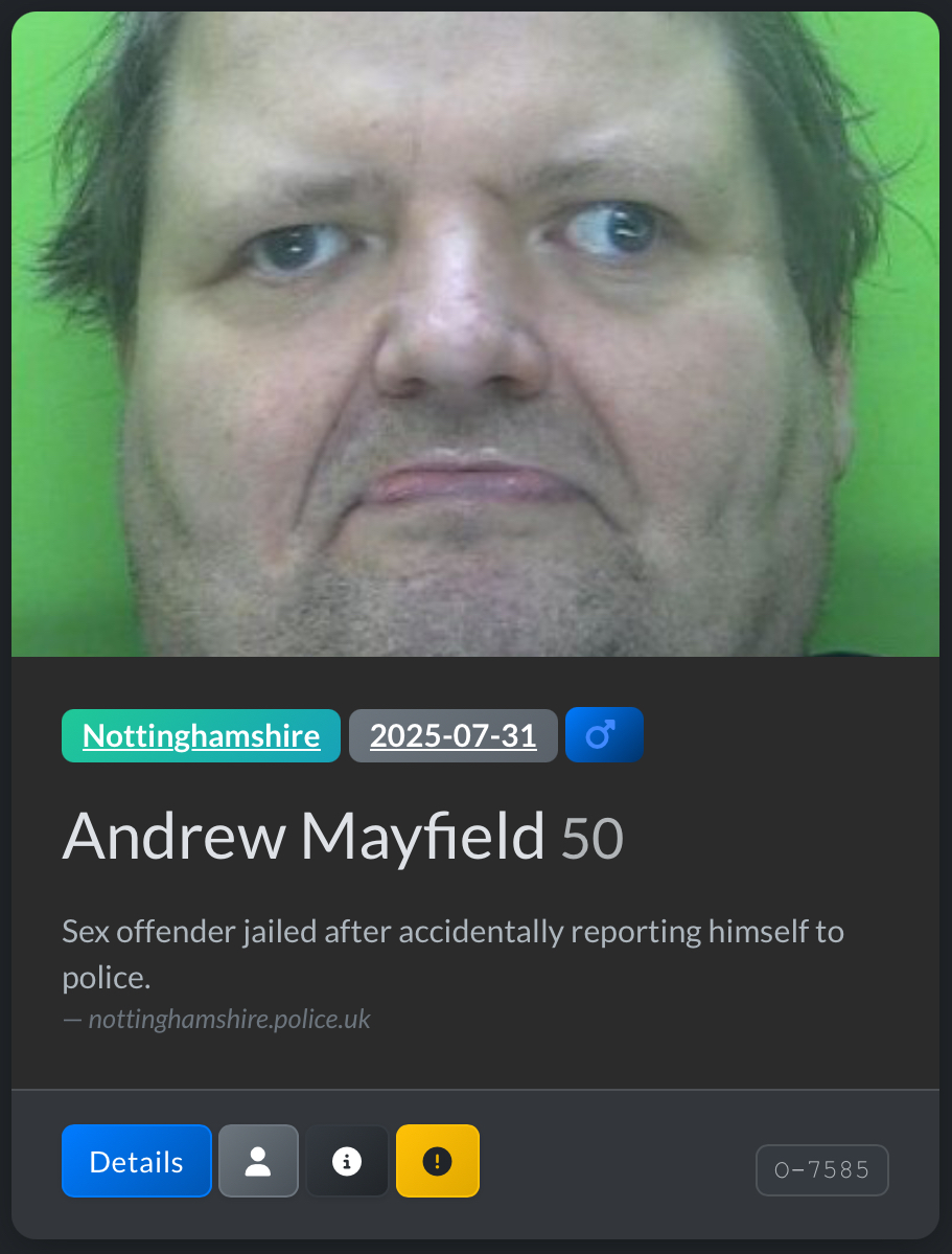 >>151002963>Look it up out of curiosity>Three in the neighborhoods right within walking distance from me>A few classified as "Offender Against Children" within just a 5 mile radiusWhelp. Thanks for making me aware of this anon.
