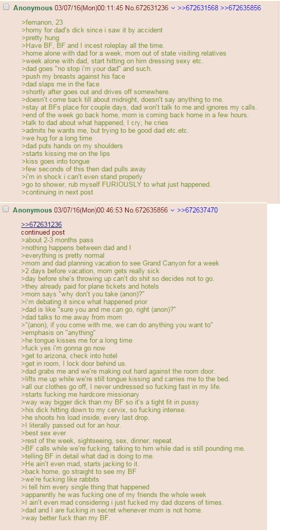 >>150995686I will never stop chronicling the misadventures of May Liu.>May Liu's mom got a new boyfriend >Okay, Mom's out of the house and I'm alone with him. Time to see if he's one of the bad ones.>Oversized sleep shirt? Check. No bra? Check. No pants? Check.>Okay, let's go out there and look vulnerable->*knock knock* May Liu? Can I come in?>I'm not ready yet! Dammit brain, tell him I'm not->"Yes! You can come inside!">FUUUUCK I'M NOT SUPPOSED TO SAY THAT YET->new daddy walks in>"Hey May Liu. Now, there's something I've wanted to do with you ever since I started staying here.">Whoa, is this it?>"Uh, w-what is it?">"Tell me, sweetie. How do you feel about... oyakodon?">HOLY SHIT>"Uh, you want... o-oyakodon? Does Mom know?">"Yes! In fact, she just arrived home and is ready for us!">"Uh, yes! Let's do this!">"Great! Come with me!">Holy shit, I'm gonna be molested by him and my mom? Okay, Gods of Molesterville, was not expecting that.>"Uh, Hey Mom you're home!, so uh, how we doing this? Do I-"Hey sweetie! Look what I got from the grocery store, you and my new darling are gonna love it!"