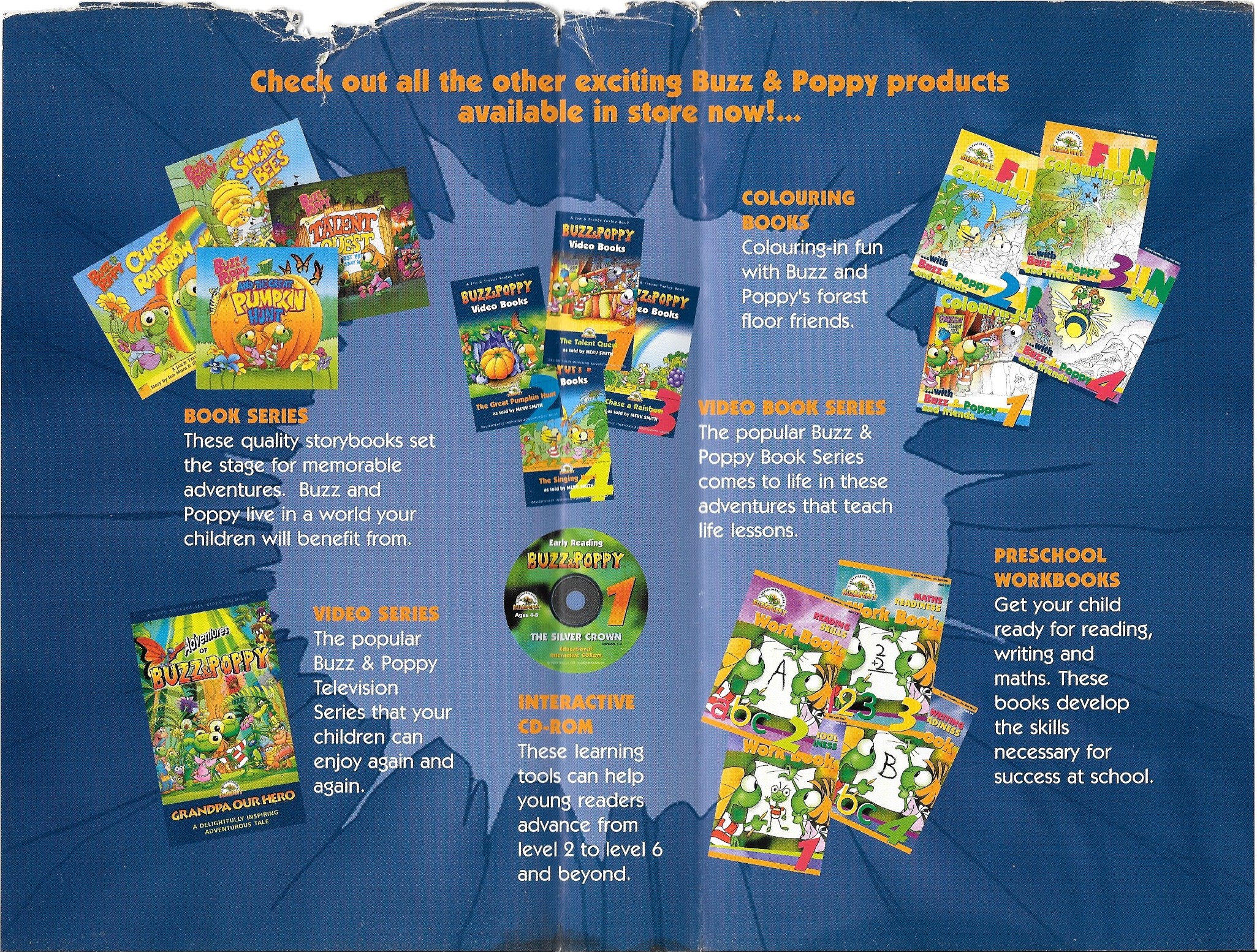 https://archive.org/details/buzz-poppy-video-book-1-the-talent-quest-swashbucklers-surprisehttps://archive.org/details/buzz-poppy-video-books-1-nz-vhs-inner-sleevehttps://archive.org/details/buzz-poppy-video-book-4-the-singing-bees-the-silver-crown-making-of-featurettehttps://archive.org/details/buzz-poppy-video-books-4-nz-vhs-inner-sleeveSomeone has found Volume 1 and 4 of 1998 Buzz and Poppy VHS. These was made in 2d hand-drawn animation before crappy full 3d animation. Two other volumes of Buzz and Poppy are still lost. If that person or anyone found a full version VHS volume 2 and 3, I'll be very happy.