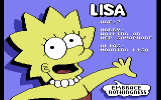 >>151024343And that "embrace nothingness" line was just from a throwaway line in an early episode where Lisa was putting Bart through a training regimen because Lisa didn't have a catchphrase they could put in that intro.