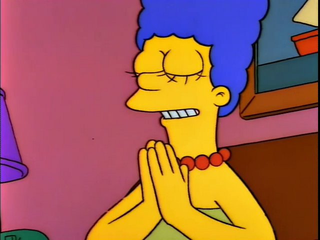 >Dear God, this is Marge Simpson. If you spare this town from becoming a smoking hole in the ground, I'll try to become a better Christian. I don't know what I can do...hmmm, next time the church has a canned food drive I'll give the poor something they'd actually like instead of old lima beans and pumpkin mix.