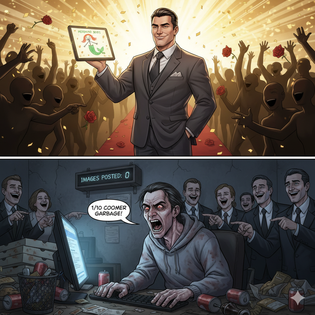 >>151037147>Oh no. He is judging the images based on their execution and not just who or what made it. Whatever will we do. Oh lordy.Ok.