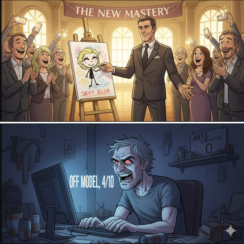 >>151040351>everyone has their burst of inspiration, but eventually returns to defaultFaggots who stick to pure prompt systems do that. Once I moved to stable diffusion I kept changing gimmicks. I was the guy who figured out how to get cartoon characters to appear as photorealistic humans and about 4 months in I finally got bored with that and moved on, creating mannequins then developing photorealistic OCs, then generating character X in artist Y's style and now I'm fucking with using Gemini to push limits on reworking old gens, making meme templates into prompts, etc. I get bored, these retards don't.