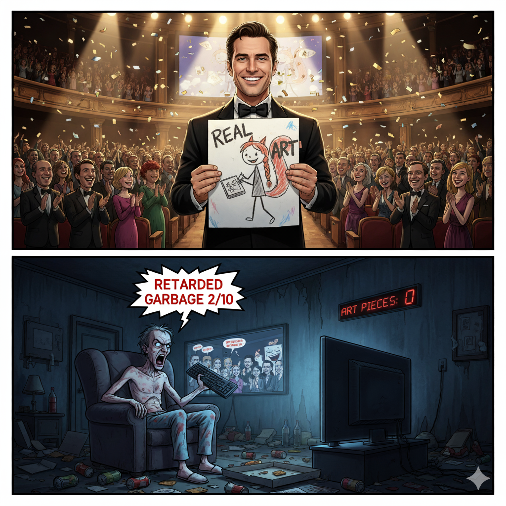 >>151038393>I am a giant insecure faggot zoomer upset by sexuality with no friends>NURRR NO BOOBIES OR BUTTS ON MY 4CHINZif you need attention waddle downstairs and call your parents fascists, otherwise go find a capeshit thread instead of shitting these up>>151038421And YOU, stop posting every fucking gen of the same prompt like an autismo. Stuff them info a single catbox gallery, post the link to it then move on to the next idea your tiny hamster brain can think of. Jesus fucking Christ, most of us gen multiples of a given prompt, pick the best result and don't dump the rest, you aren't fucking special. Show some goddamned self control, you're making Ranjeet the Retard's job easier.>NURR MUS POS AWW OF DEMFuck you, this isn't your personal toilet