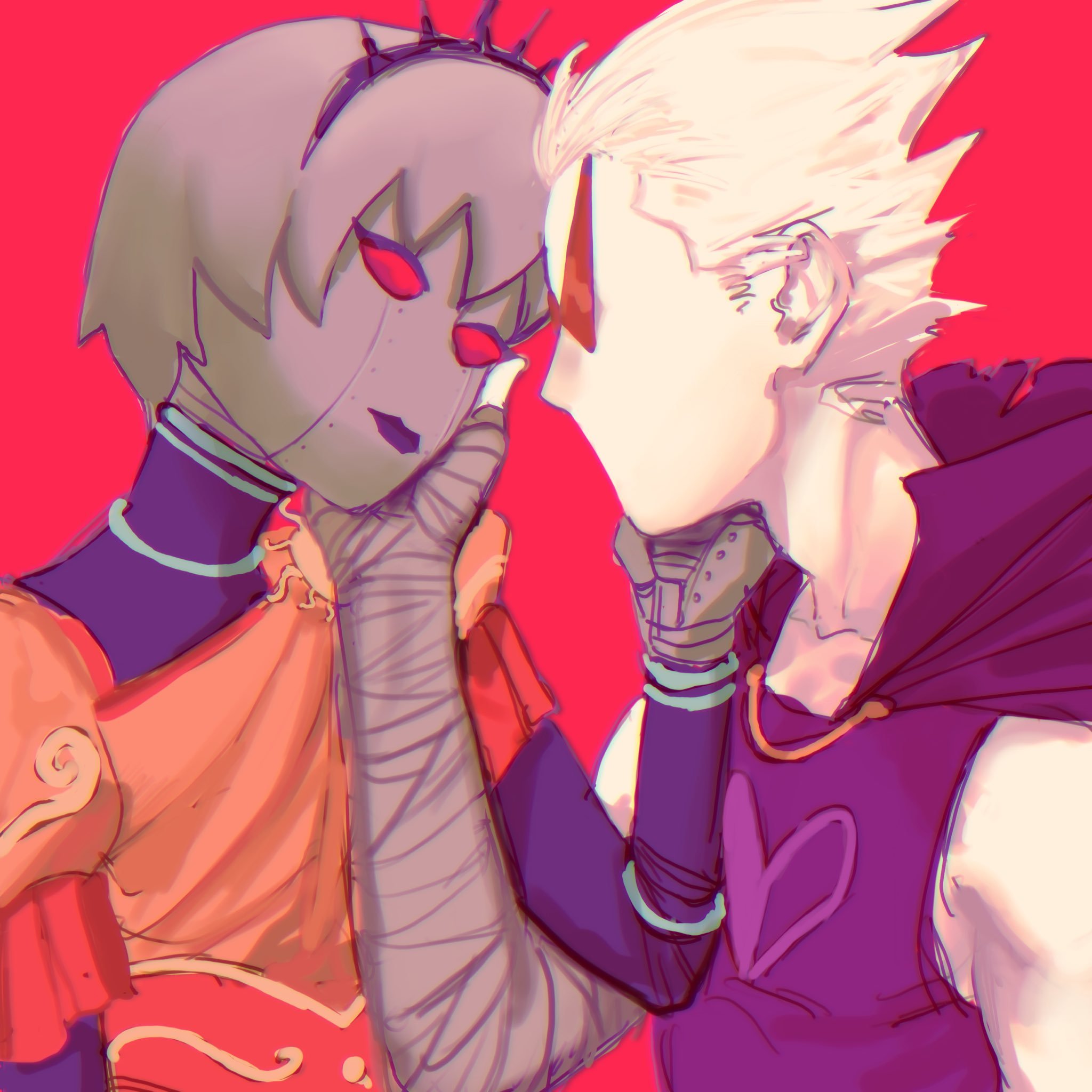 >>151056917they'd be pretty chill to each other but not remarkably close. they don't have much in common but can at least bond over being heart-bound and fighters. he'd raise an eyebrow to her excessive roleplay but would at least humour him. she'd raise an eyebrow to his excessive tangents but would at least humour him. he might even remind her a bit of equius in some ways, she might even remind him of roxy in some ways.friends of friends most likely in a pretty casual manner
