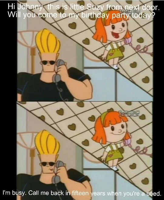 >>151059389Johnny's a good boy and willing to wait until she's legal.