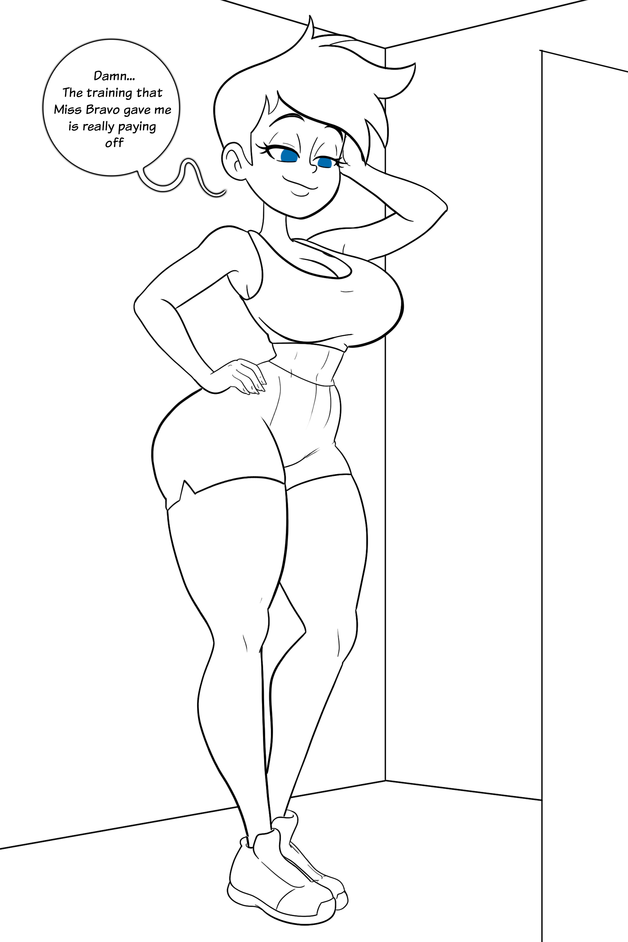 >>151115656Johnny in a office outfit, with the shirt buttons clearly looking way too tight on her bust with her being eager for em to fly off.