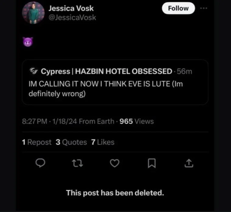 >>151109024If she doesn't come back she's going to be like the Boba Fett of Hazbin Hotel methinks ... old skool Boba Fett that is to you Zoomie retards.PROTIP: Character that barely said a word and was badass and beloved until they fucked it up later, (which is probably what Viv will do somehow, some way I suspect).