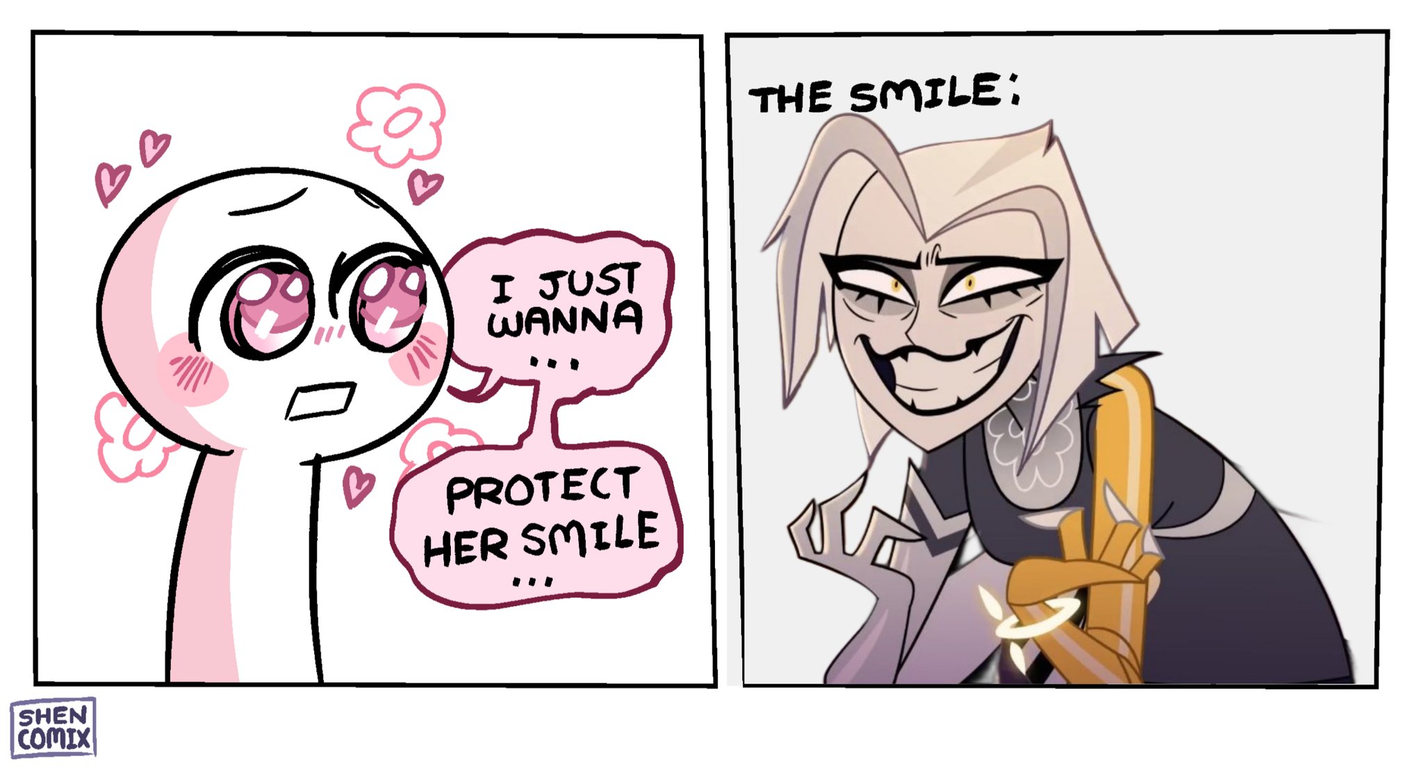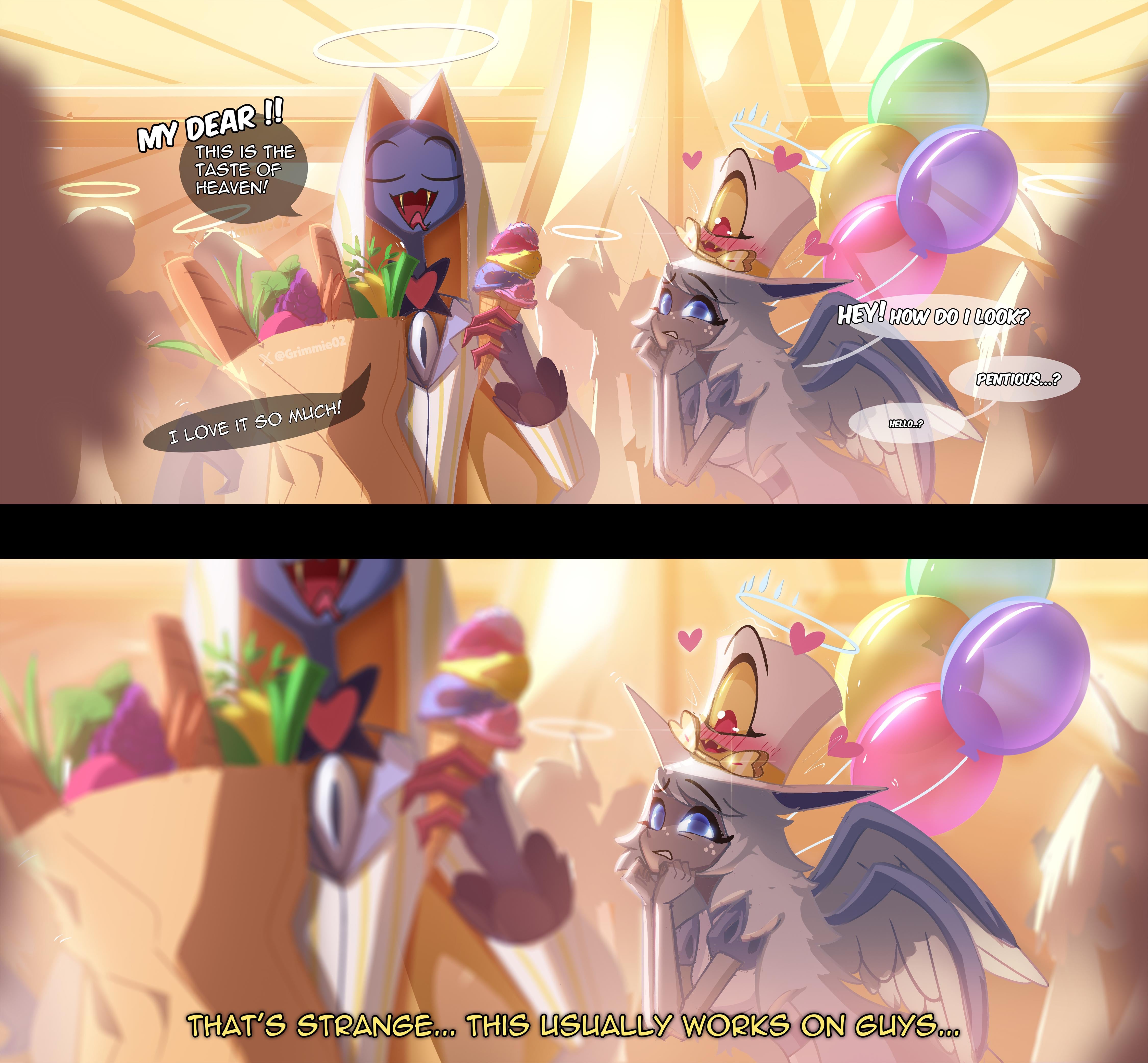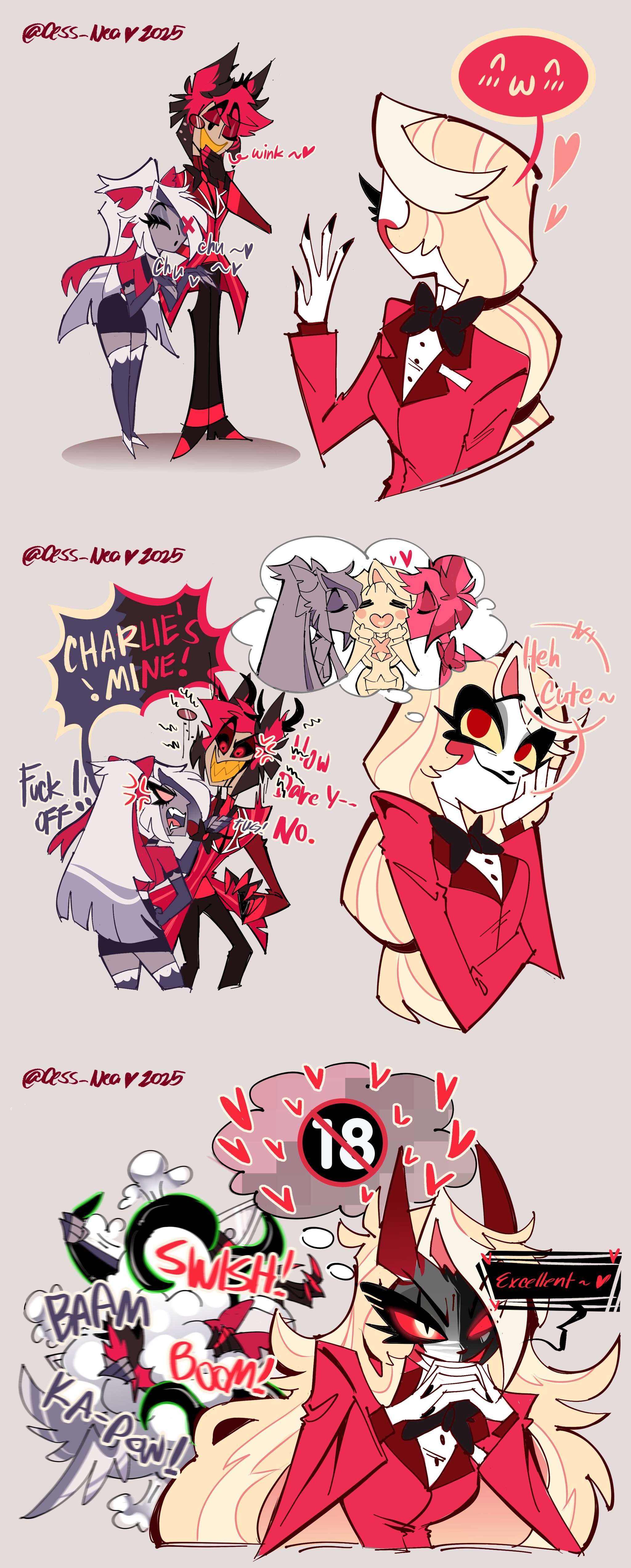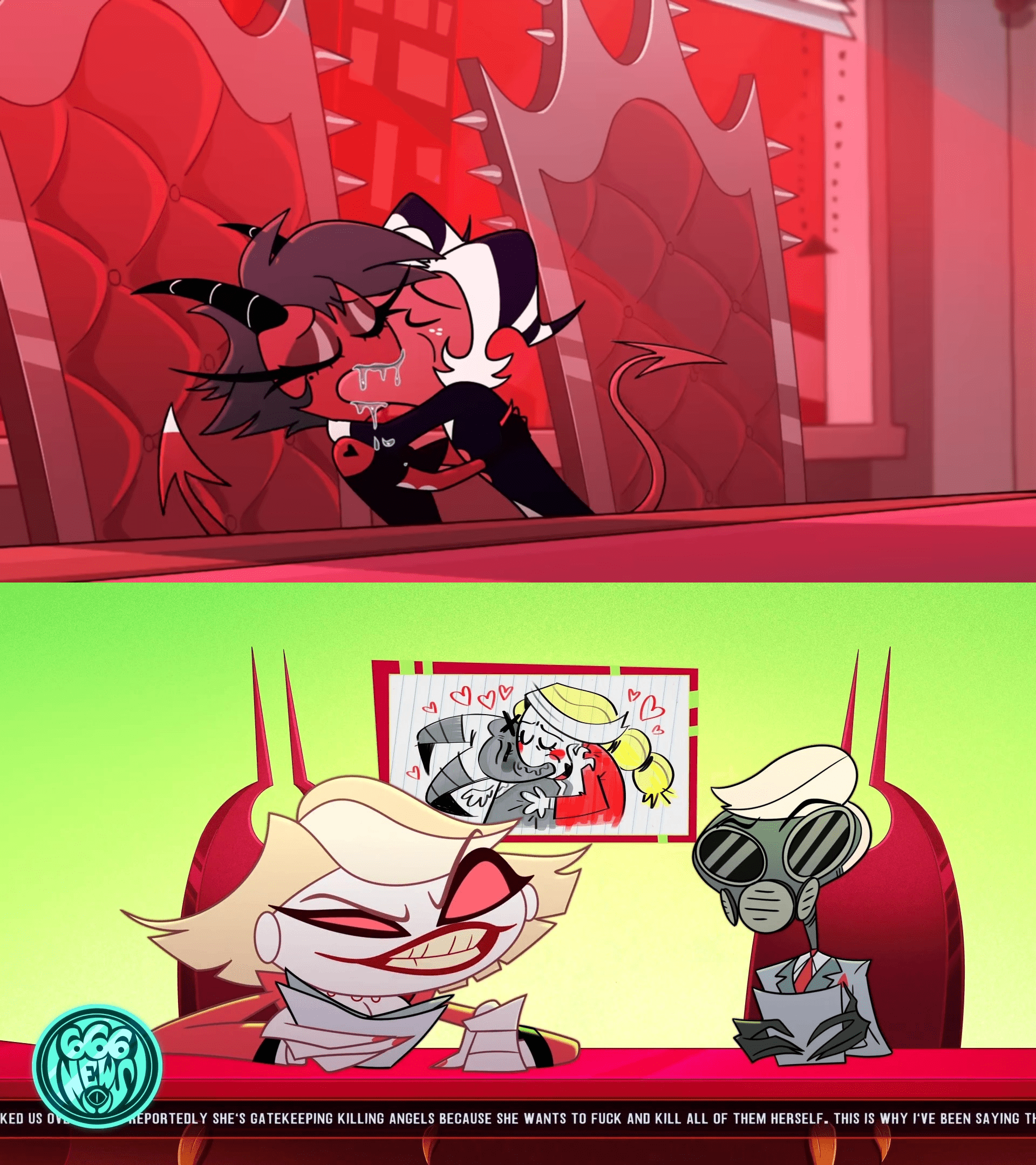>>151095361My top guesses is either charlie x alastor or lute x adam.We know its not valentino x angel since she even jokes about it even though most of the fandom would hate it and I can't think of any other ship that would cause this reaction.