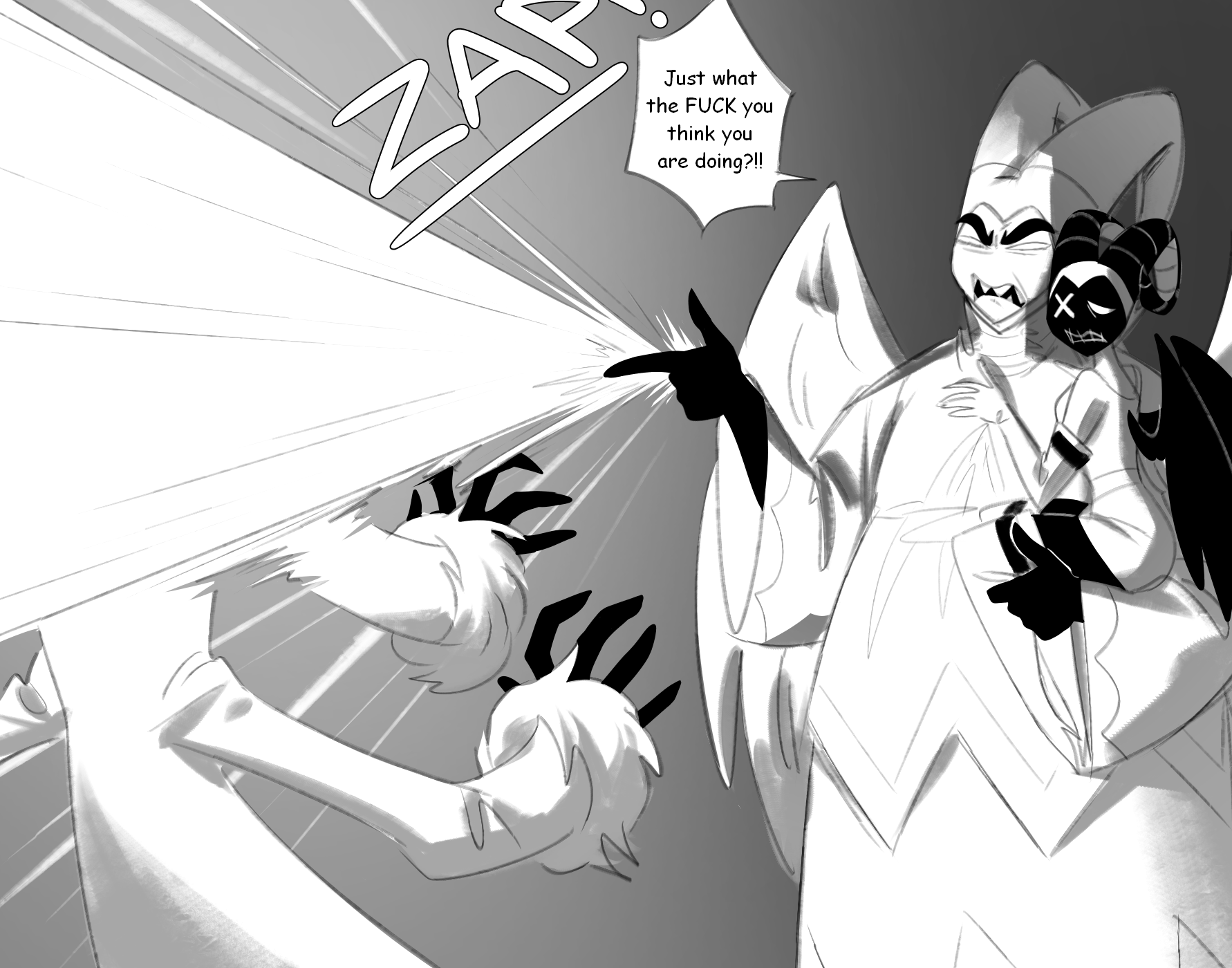 >>151109165Why doesn't Charlie just shoot the not nice angel lady with her demon lazer? She could shoot the bad TV man too and it would fix everything then.