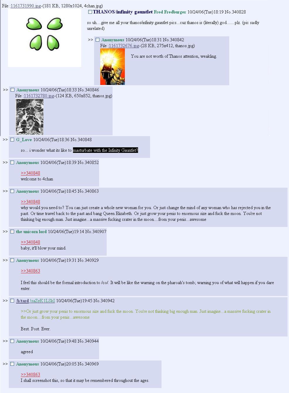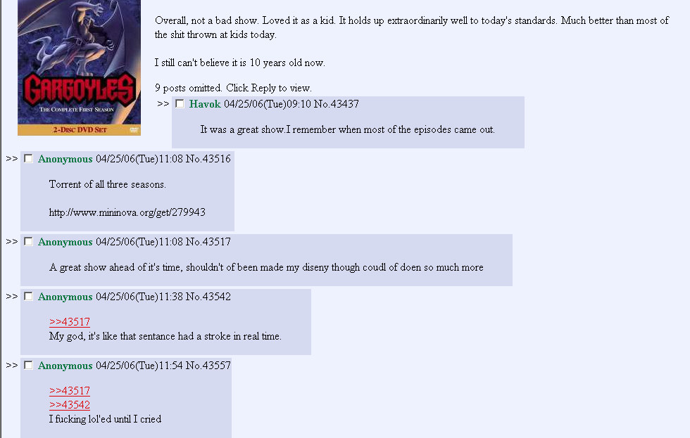 >>151106571I was still mostly on /a/ back then, I didn't start having /co/ as my main board until maybe 2011.I don't think I ever did anything lulz worthy enough to be screencapped.
