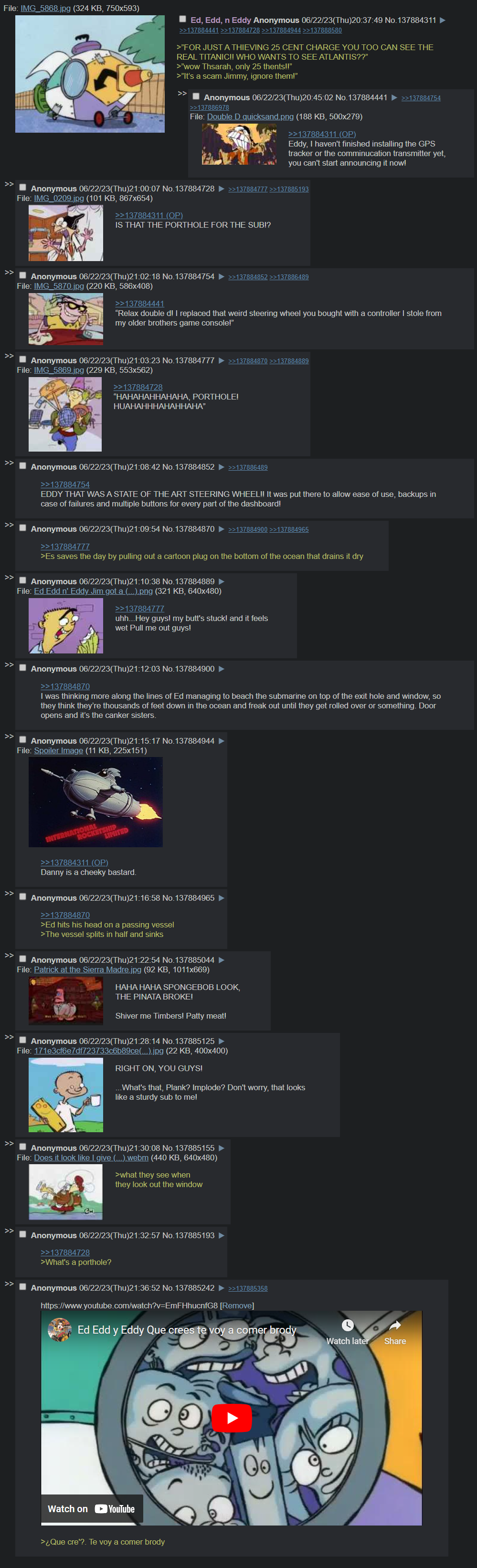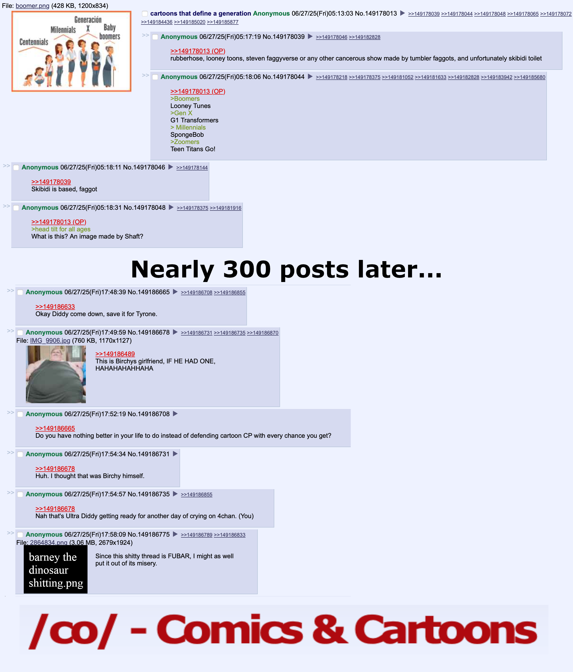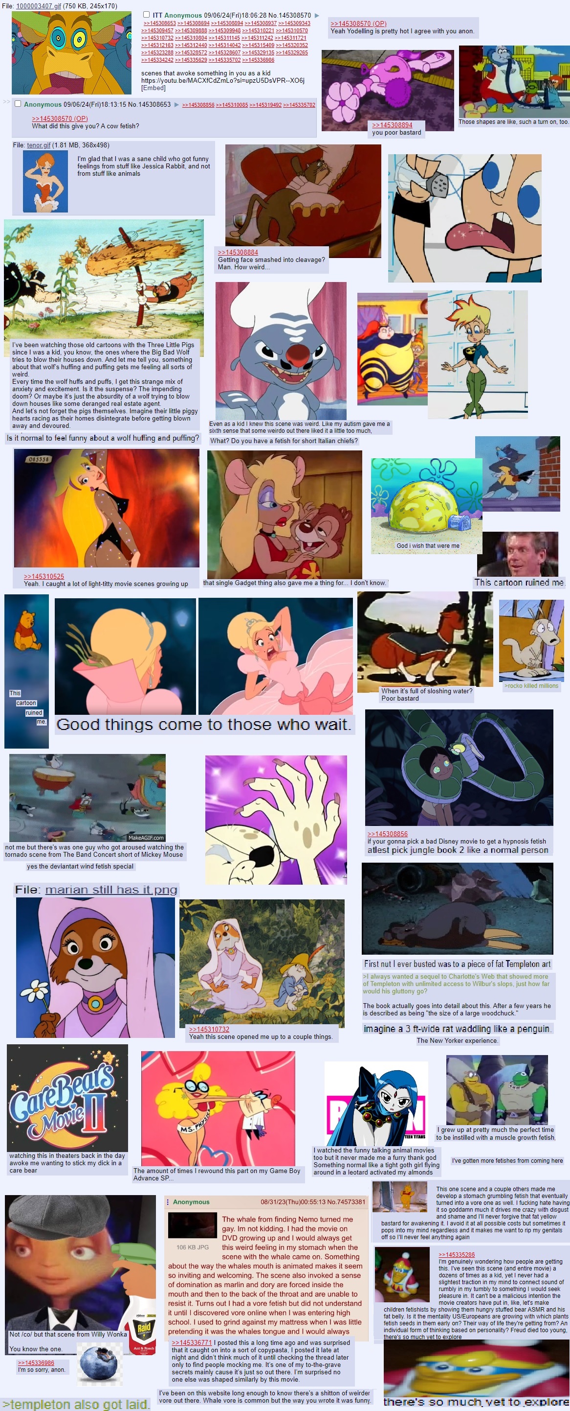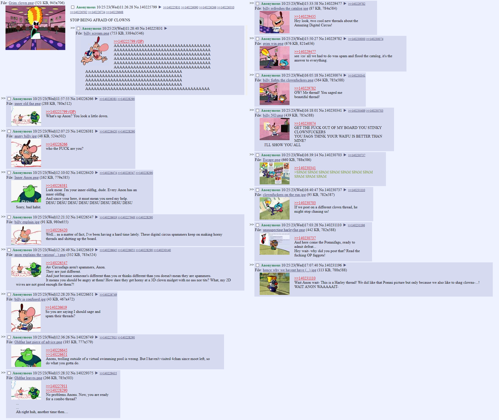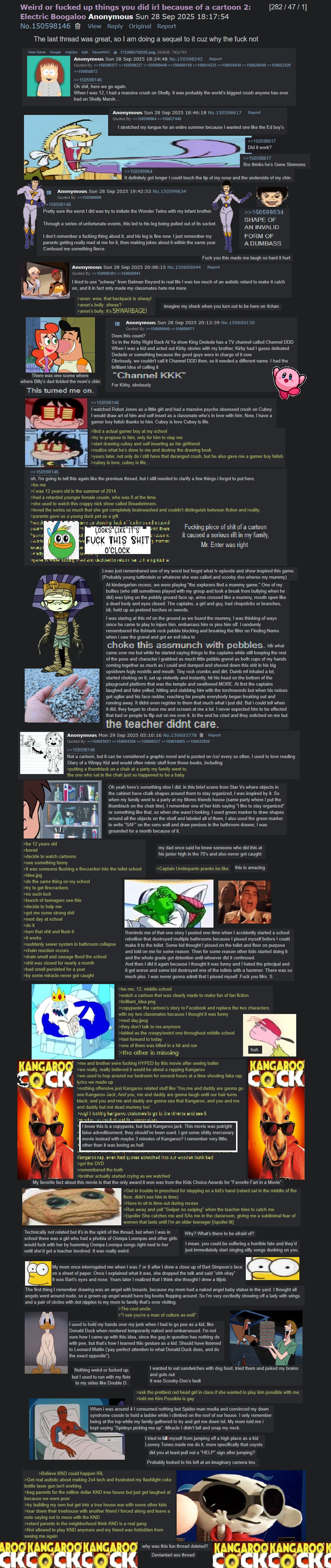 >>151110738Someone could have done the best of part 2, but it was deleted abruptly.The ones that should be in it>anon’s crush on shelley>billy’s dad>schway anon>cubeyschizo>breadwinners duck murderer>firecracker toilet>kangaroo jack>swiper no swiping sa>oompa loompa phobia>dog food sandwiches>knd attacks the neighborhood>looney tunes suicide>the deletion aftermath