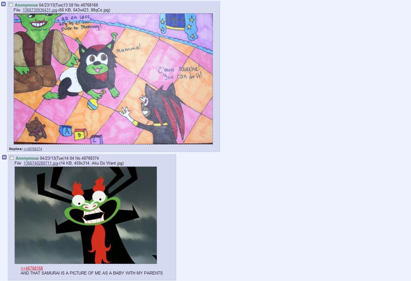 Anyone have the Samurai Jack one with anon trying to draw hands making an S?