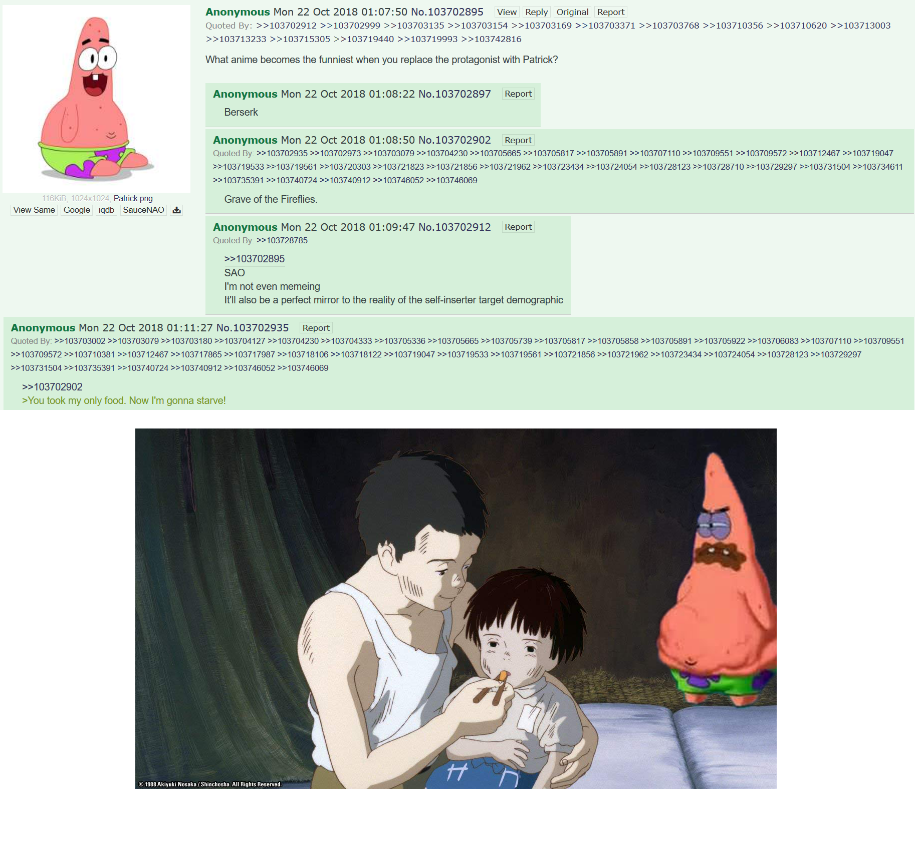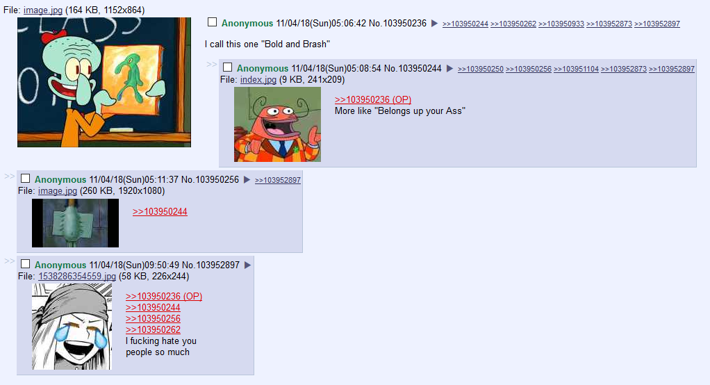 >>151105460It's funny how old 4chan humor is called soulful and whatever but it's literally the stuff we hate about reddit for the past ten or so years