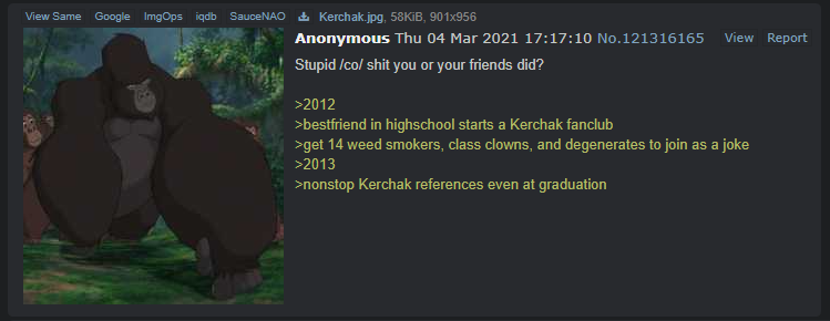 Someone should archive that “weird /co/ legacies” thread and it’s “sequel” that devolved into cavemen fighting.