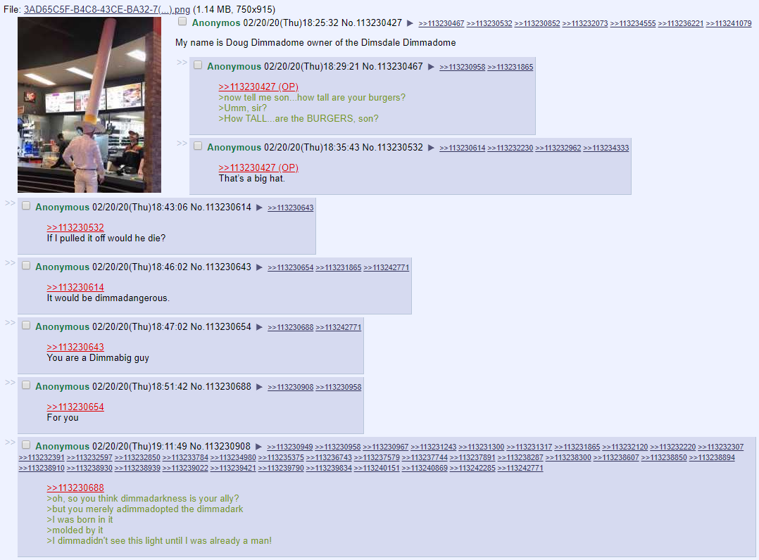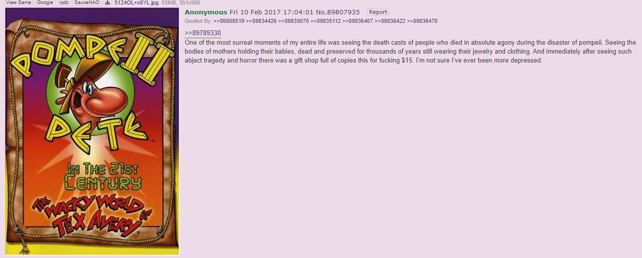 >>151106571It's surreal that it was 15-20 years ago.Like imagine if it was the 2000s and you were looking at image board posts from the 1980s.I think how nice 4chan was before pol, moot sold it, and how smartphones ruined shit. Can never go back and we didn't know what we had until it was gone.Also sucks 2006-2012 /co/ is gone forever no working archive with images exists, along with Desu's oldest images from like 2012-2015 also being gone. Even the thumbs.