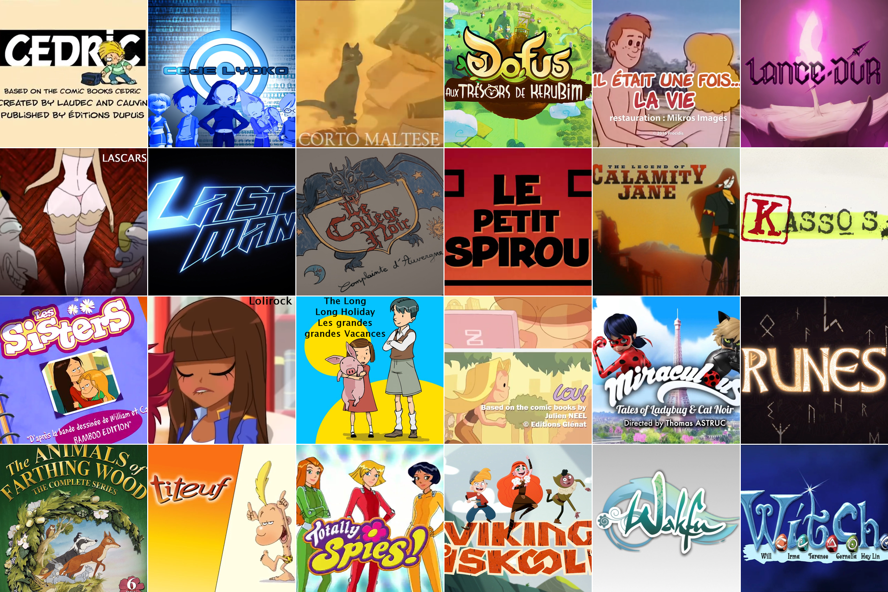 >>151106422Classic French Cartoons starter packthe BD classics adaptations:all the Astérix animated movies, but mostly The 12 tasks of Astérix, (only Astérix movie made by the original authors), plus the two 3DCG Astérix: Mansions of the Gods and Secret of the Magic Potion, which are very goodall the Tintin animated series & movies (they’re Belgian I know, obviously avoid the Spielberg one)the two Lucky Luke musical movies: Daisy Town & La Ballade des DaltonsMarsupilami (2000) seriesTiteuf seriesthe best series from Xilam:Oggy and the Cockroaches (with the movie)also Zig & Sharko S2&3 if you like that styleSpace Goofs (S2, avoid S1)The New Adventures of Lucky LukeShuriken Schoolthe Japanese/Asian-inspired series:Wakfu & Dofus (plus the Dofus film if you like the style, but it bombed)Oban Star-RacersDragon Hunters (with the 3DCG movie)Code Lyokothe cult-1980s-Japanese-animes-you-didn’t-know-were-actually-French-coproductions:The Mysterious Cities of Gold (absolute timeless classic, there’s also a 3DCG sequel but not as good)Once Upon A Time… Life (and all the other ones)Inspector GadgetUlysses 31the football series:Foot2Rue (wasn’t dubbed in English but it’s a classic)Galactik Footballthe action-for-girls series:Totally Spies (also the lesser-known Martin Mystery, same studio and art style)MiraculousMisc series:The Shadoks (very old experimental absurd comedy, absolute classic)Magic Roundabout (old, used to be a classic for boomer kids, UK version re-used the footage with different stories)Kaeloo (similar to Oggy but 3DCG with dialogues)Miniscule (cute 3DCG insects in real-life footage, two movies also)The Jungle BunchFamille Pirate (never dubbed)Funky Cops (from Code Lyoko studio, 2D & 3D mix)Michel Ocelot movies:Princes & Princesses (silhouette animation, very good)Kirikou (with its sequels if you like)Misc movies:The Triplets of BellevilleThe King and the Mockingbird (timeless movie classic)