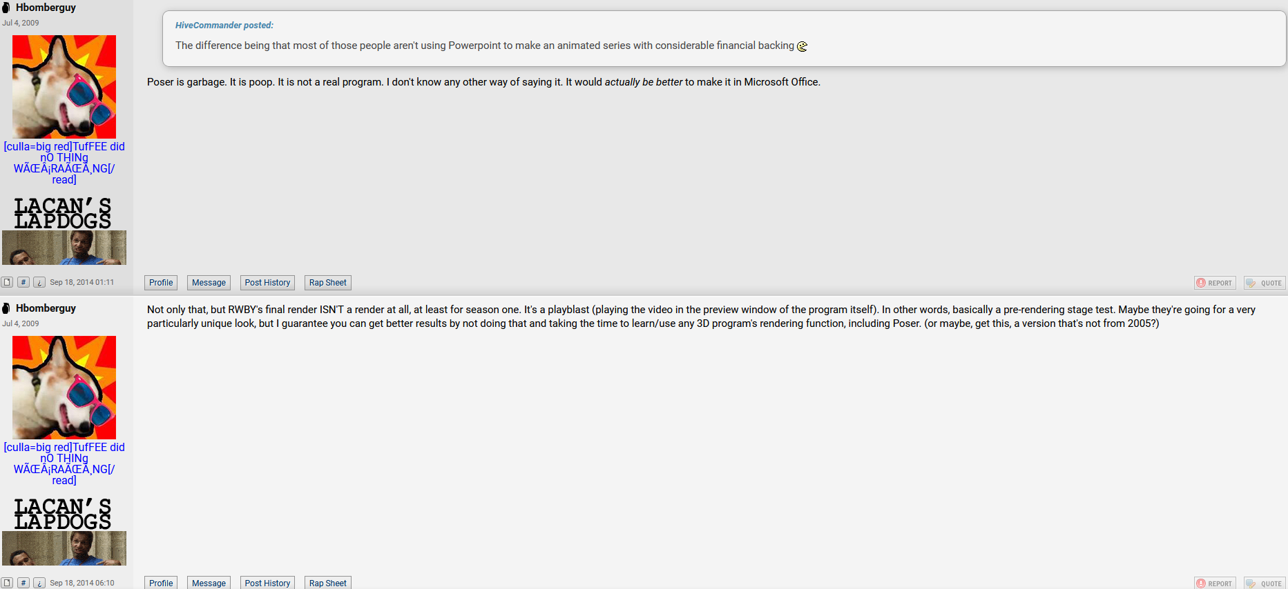 RWBY looked amateurish at worst when it was new. Everyone thought the trailers were hype and cool. Again, I don't worship Monty. ANYONE could have made poser look as good as it did in early RWBY if they spent 24/7 doing it because they were autistic about it, and everyone saying it looked THAT bad are so cynical they can't "let" themselves enjoy what they're watching.