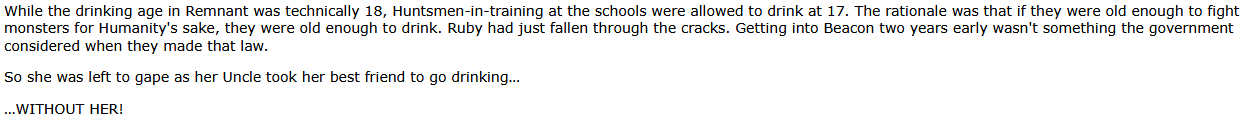 It's completely impossible to make good RWBY fanfiction, because it would either need to be a recut or its own animated show. The bar is the Red trailer.
