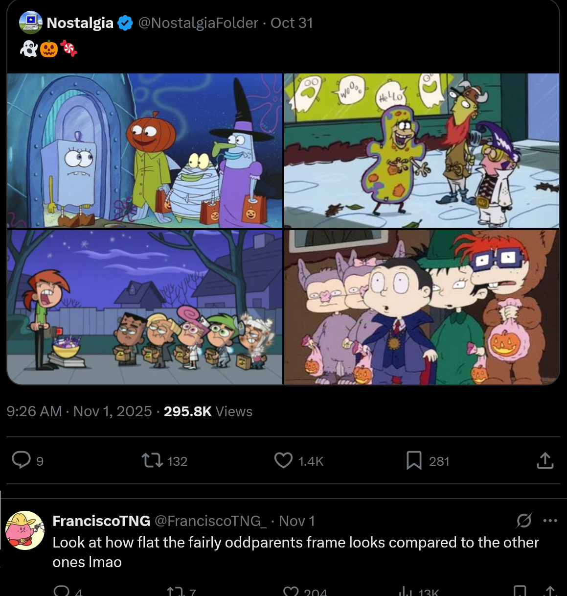 The only issue I have is that Timmy and Co's costumes look low effort, even though I know thatsthejoke.jpeg, and Vicky doesn't get one at all, although it does set up the joke "she's scary enough in person". Trixie and her friends all wear identical costumes (and for some reason shes evil now), and Tootie no shows, not sure if Francis or Sanjay were there either. So yeah FOP's does emminate some laziness. This episode was made by John Fountain, who as we know is actually responsible for the entire show, he even really voiced all the characters. Strange such a legend would drop the ball here.