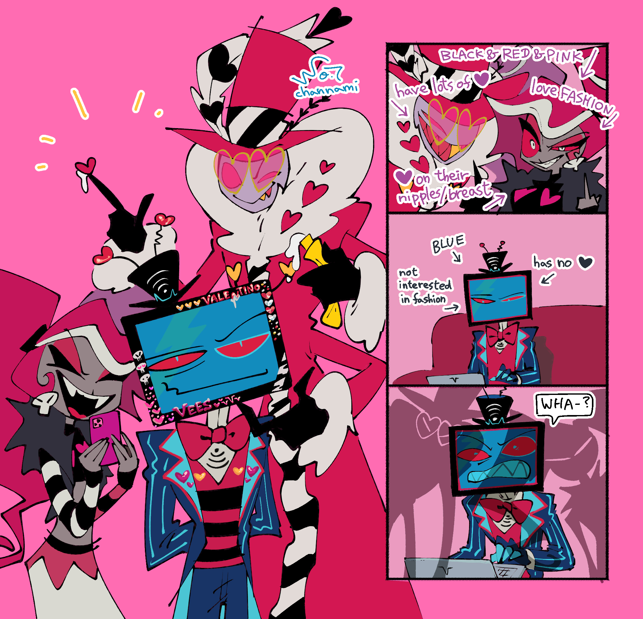 Shit anon, I thought about that staff thing too. That way I can have more Vox/ and Alastor back and forth (and Alastor would make Vox pay for all the shit he put him through) and some Vees angst on the side because it’s obvious those three love each other.
