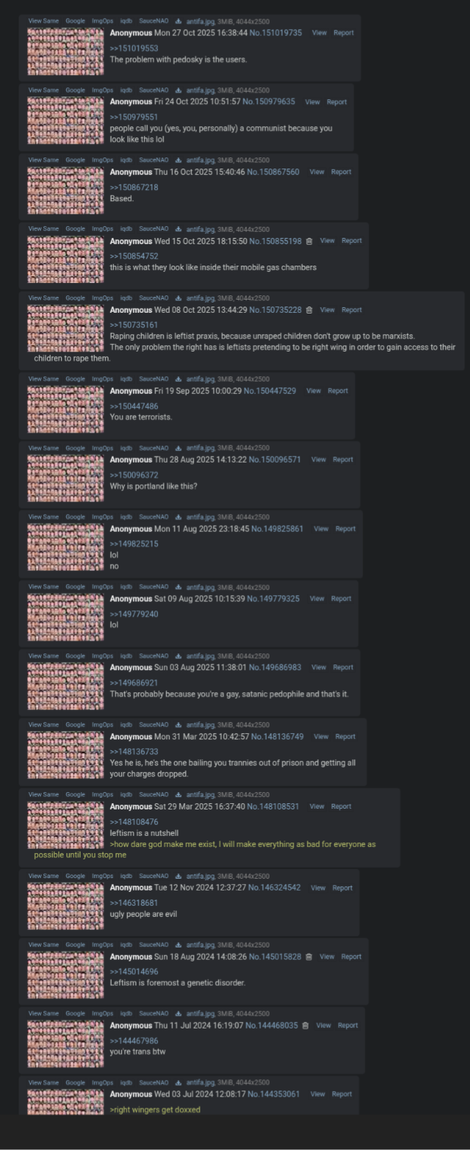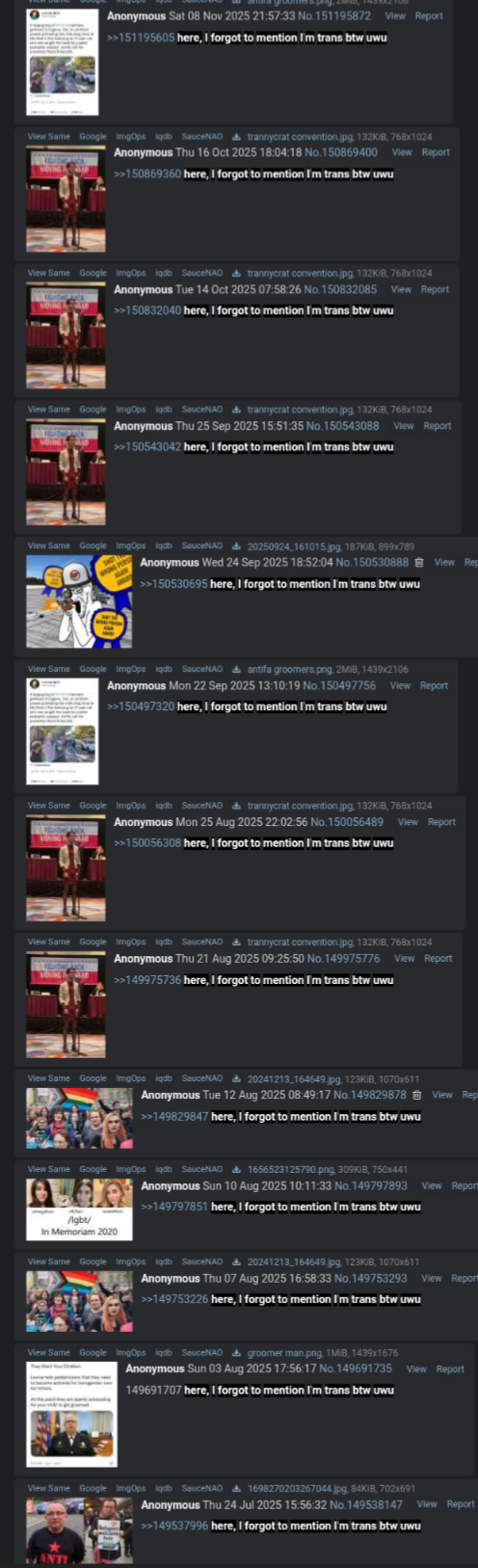 >>151334529>Every other thread is made by the same /pol/tard to mald and spam about leftists.Actually the threads are made by the lefty/pol/tard with the express purpose to spam.