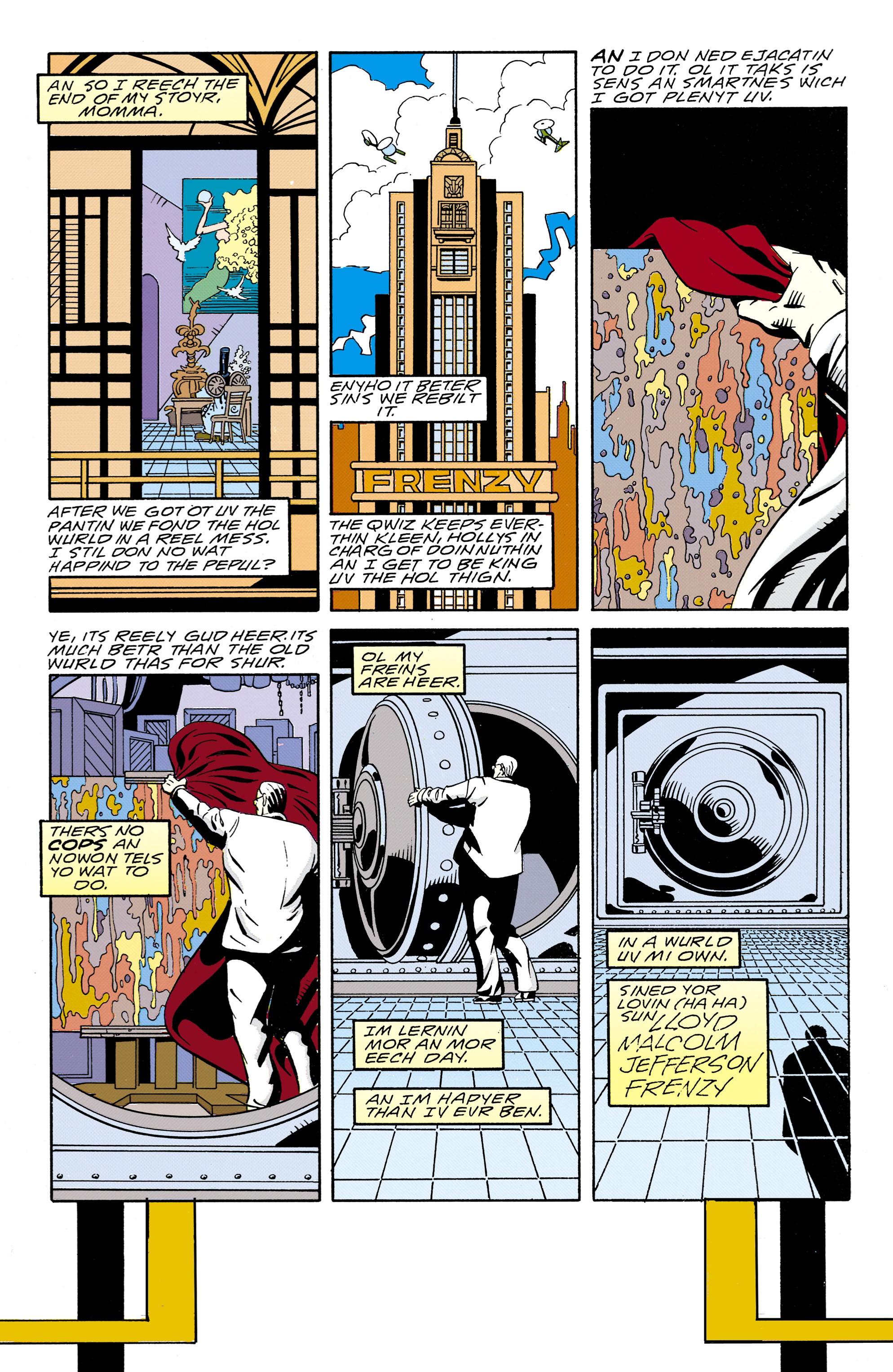 >>151374391I don't know.I'm gonna go to bed after this one.I don't have good scans or enough scans of Giffen's run saved for it to make enough contextual sense just focusing on Mr. Somebody.I also don't have the pages from Way's run organized for the character focus.