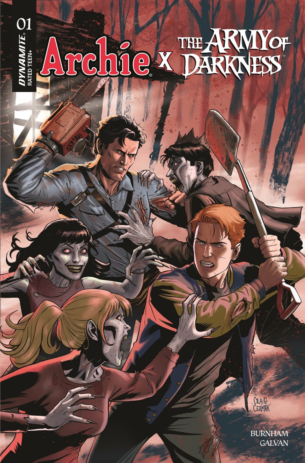 >After teasing the project at New York Comic Con, both publishers confirmed that writer Erik Burnham and artist Bill Galvan will helm the chaos. Burnham, no stranger to the world of Ash thanks to Army of Darkness vs. Reanimator: Necronomicon Rising, has an impressive resume spanning Ghostbusters, TMNT, Transformers, and Godzilla — making him a perfect fit to drop the Chosen One into Archie’s backyard. Galvan, a longtime Archie artist, brings the classic, instantly recognizable Riverdale look to this bizarre mashup.