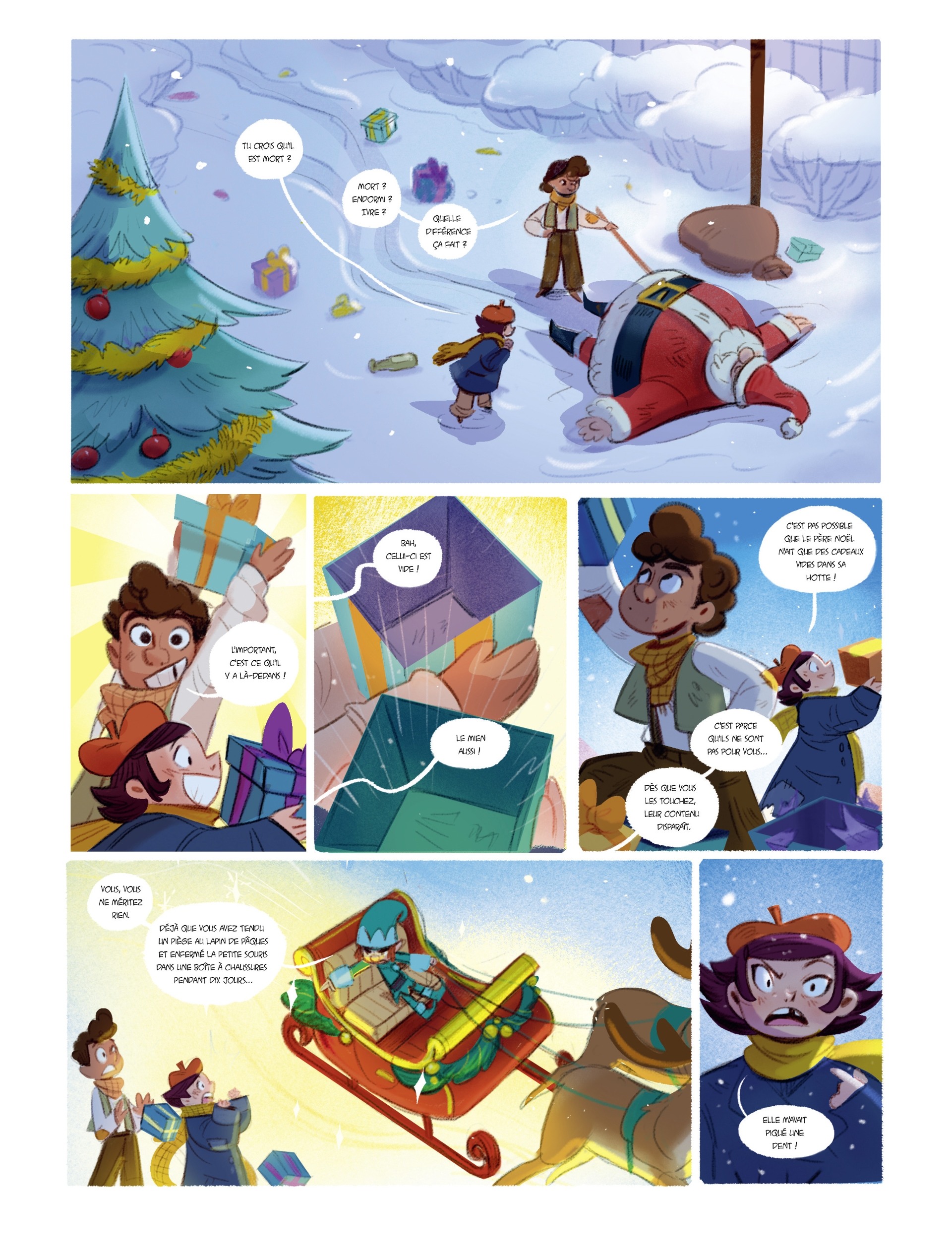 >>151651683"Do you think he's dead?""Dead? Drunk? Asleep? It makes no difference.""What's important is in here!""Bah, this ones empty!""Mine too!""It's impossible for Santa to only have empty gifts in his sack!""That's because they aren't yours...as soon as you touch them the contents disappear.""You don't deserve anything. You've already set a trap for the Easter Bunny and locked the Little Mouse* in a shoebox for 10 days...""She took my tooth!"*Basically French Tooth Fairy