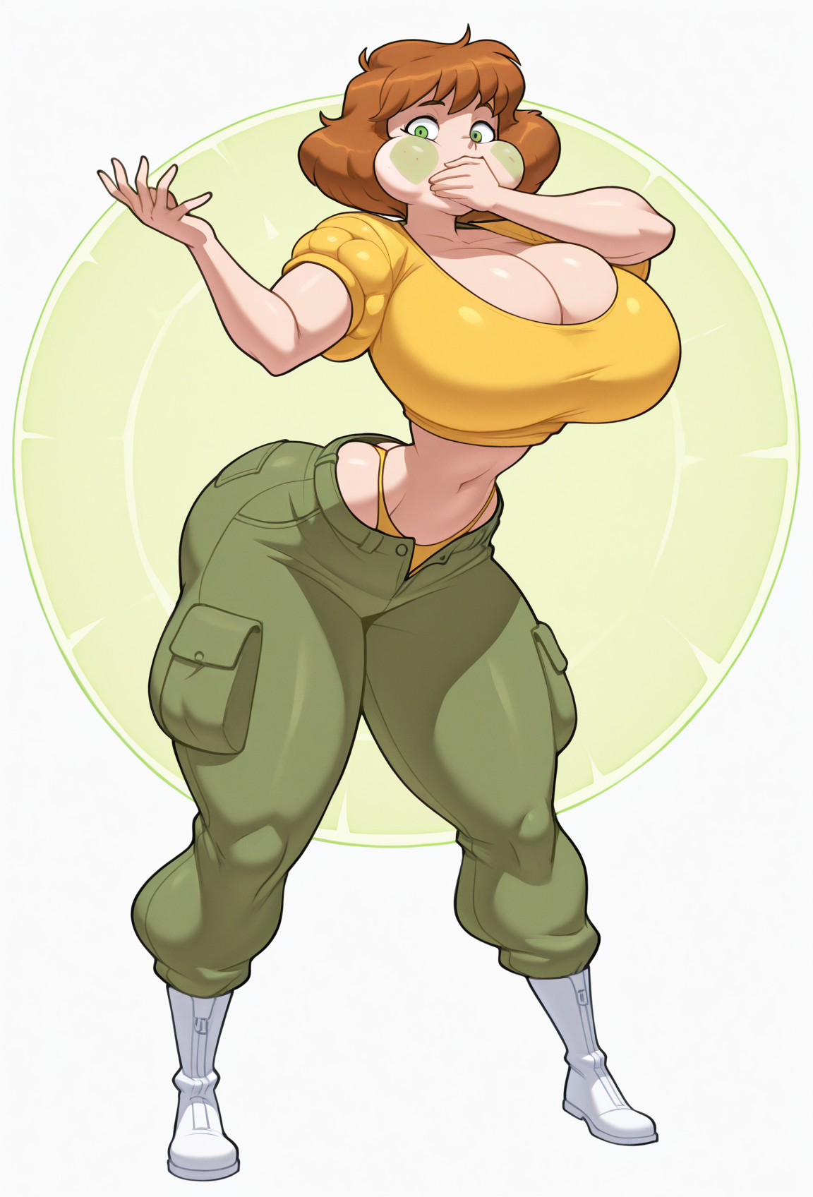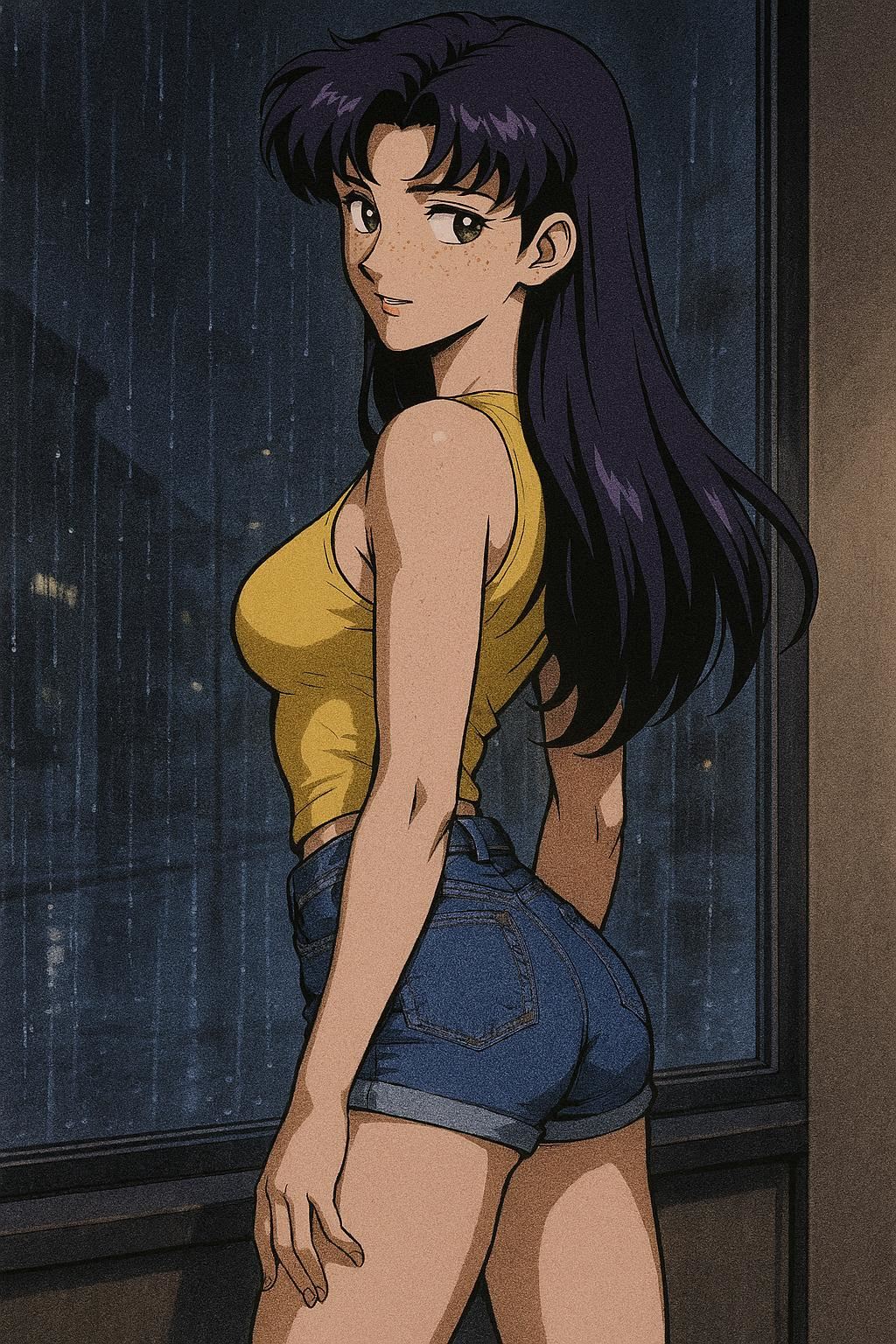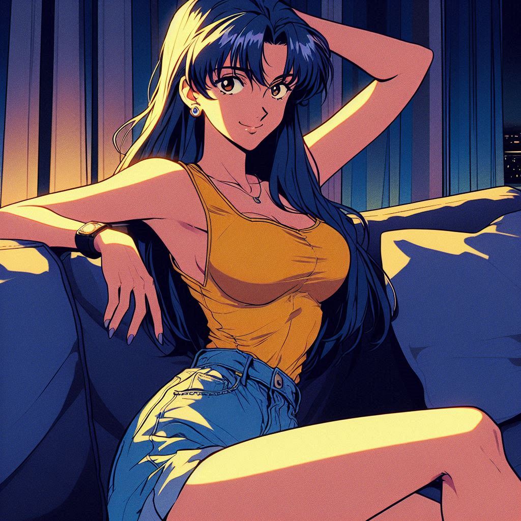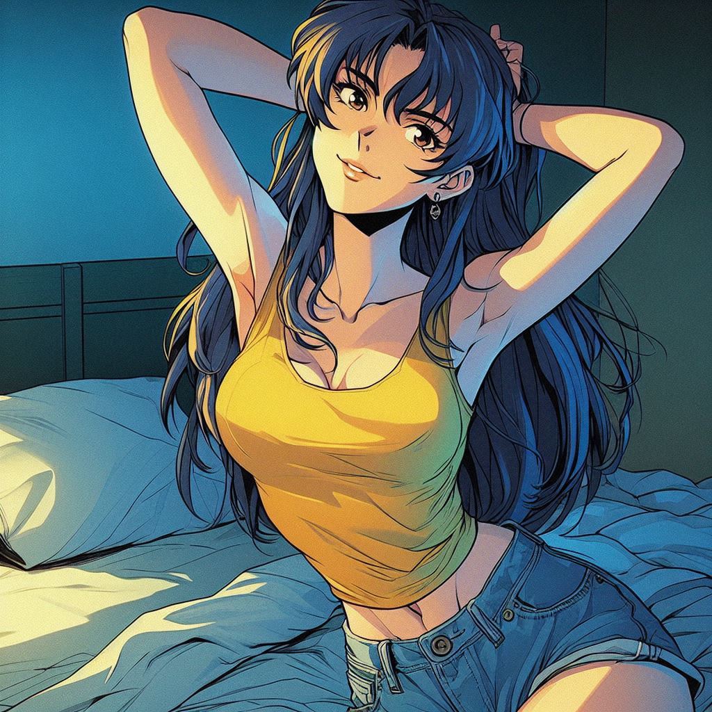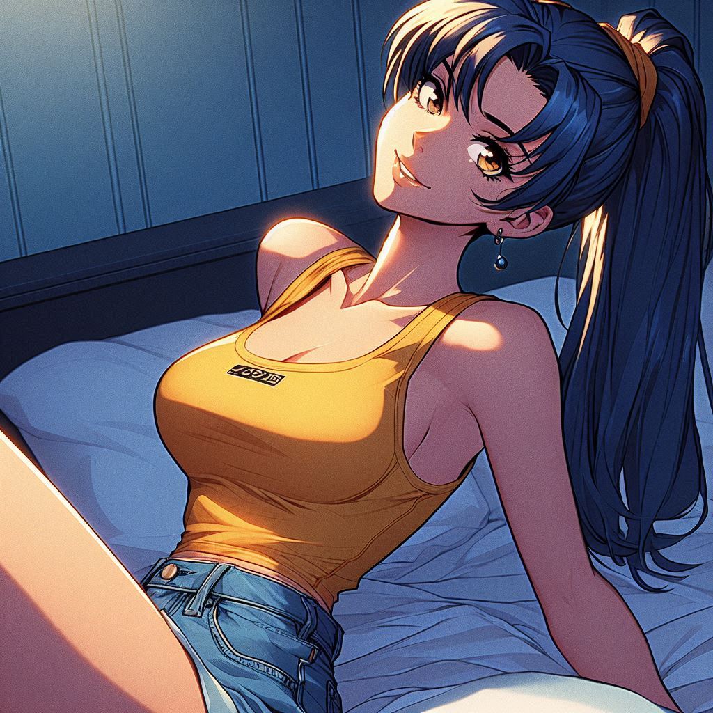 >>151601952>high quality highly detailed oil painting photograph of:: Yang from RWBY (wavy Blonde hair, red eyes) wearing black biker jacket with yellow stripes over yellow tshirt, Hair is fiery and luminous against the dark sky, décolletage, looking at viewer, embracing self singing, perspiring, exhausted. under dull street lamp, dark city street. wave at viewer. Feminine, abs, vneck, barearms, 1990s Americana, RWBYSometimes the abs actually appear.