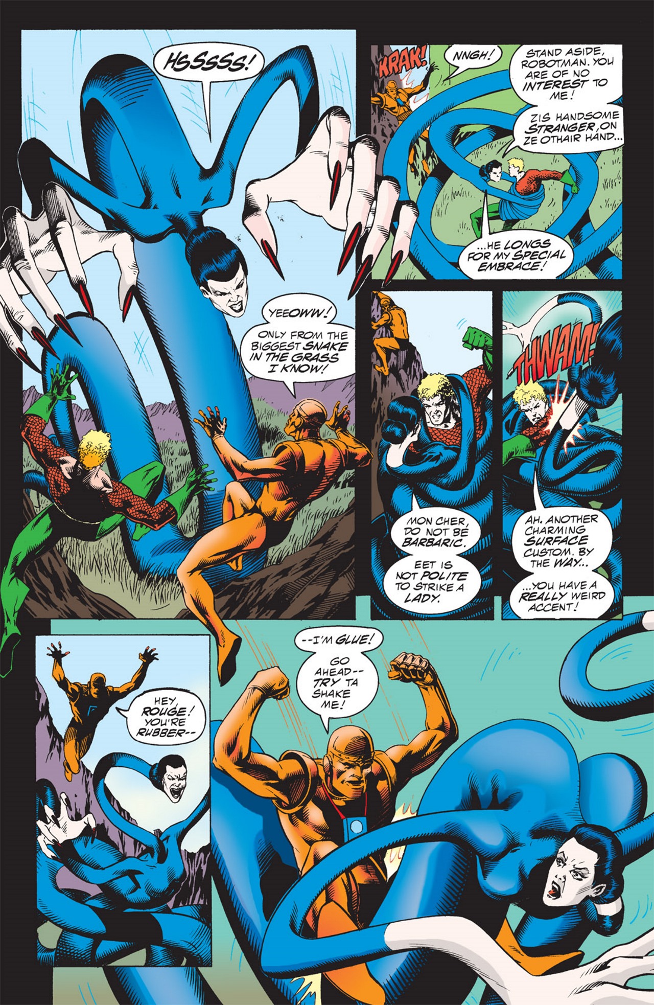 >>151662160My wacky little idea I’ve had for the Earth-11 version of Plastic Woman is that in this universe Eel is still his normal self with the same origin but he transformed himself into a woman at the wrong time early on and now is caught up in a lie with the other members of the Justice League who know him as a woman and not a former convict.