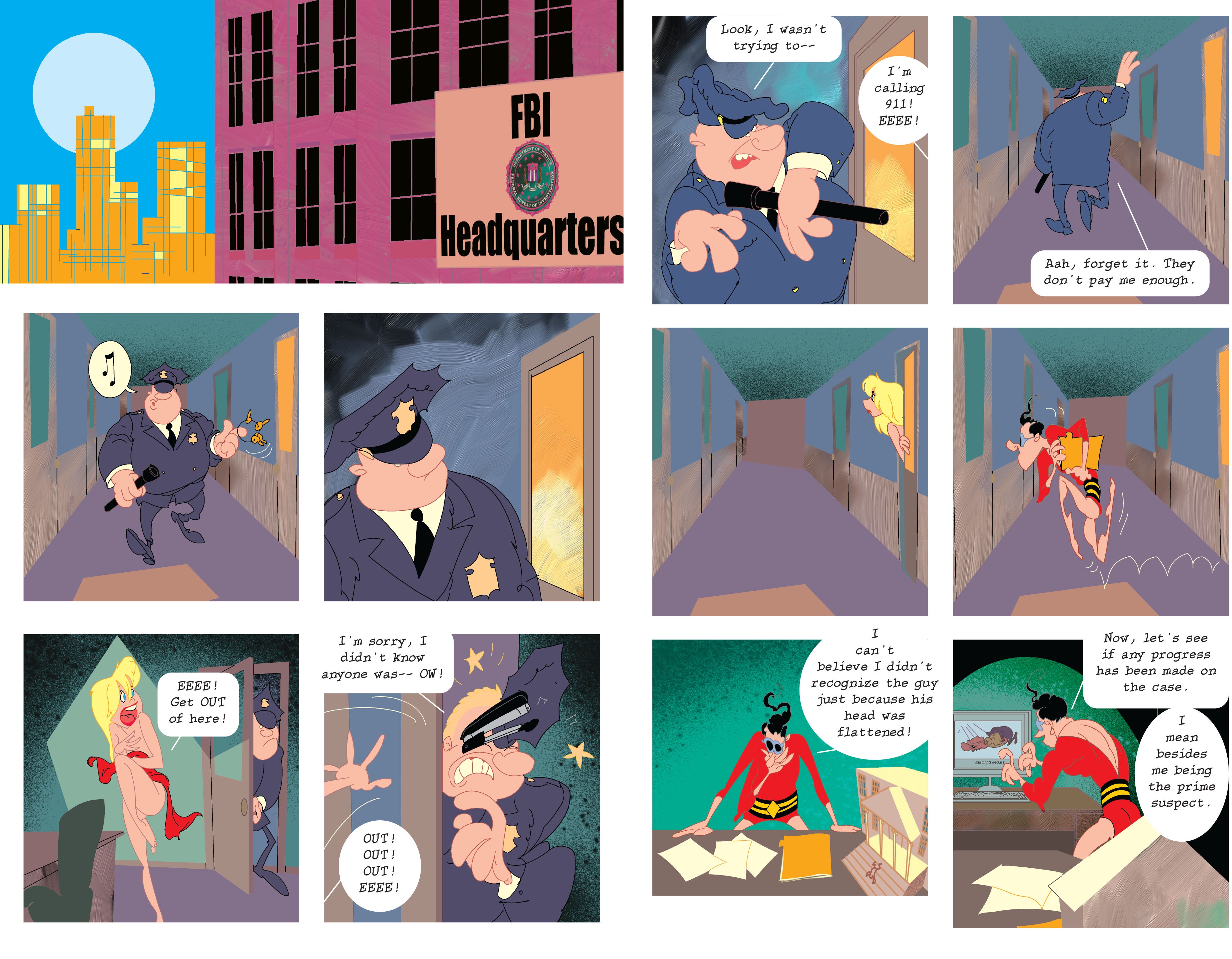 >>151622492Jack Cole’s Plastic Man was mostly serious and no-nonsense. Everyone else around him were the goofy ones.