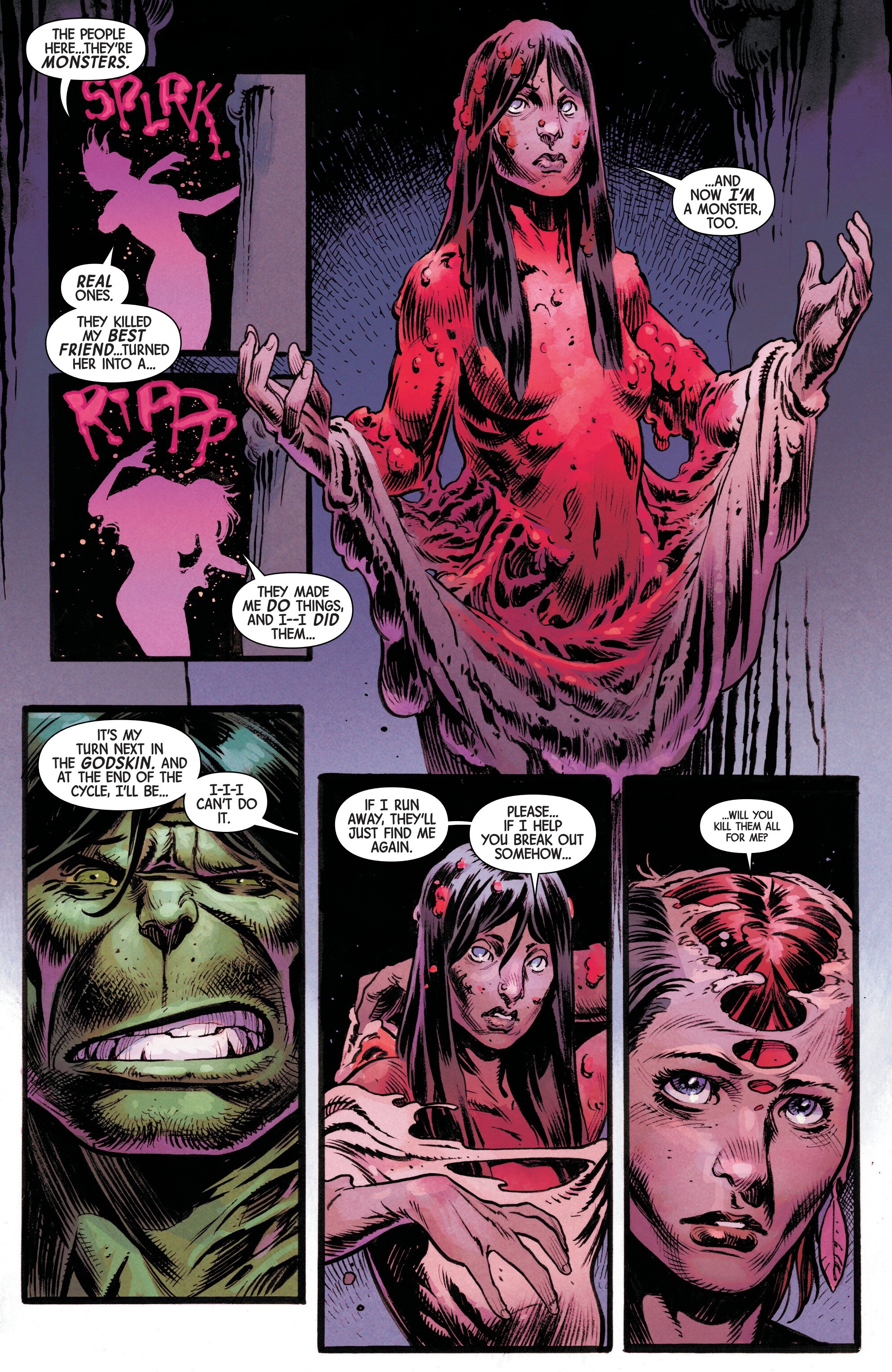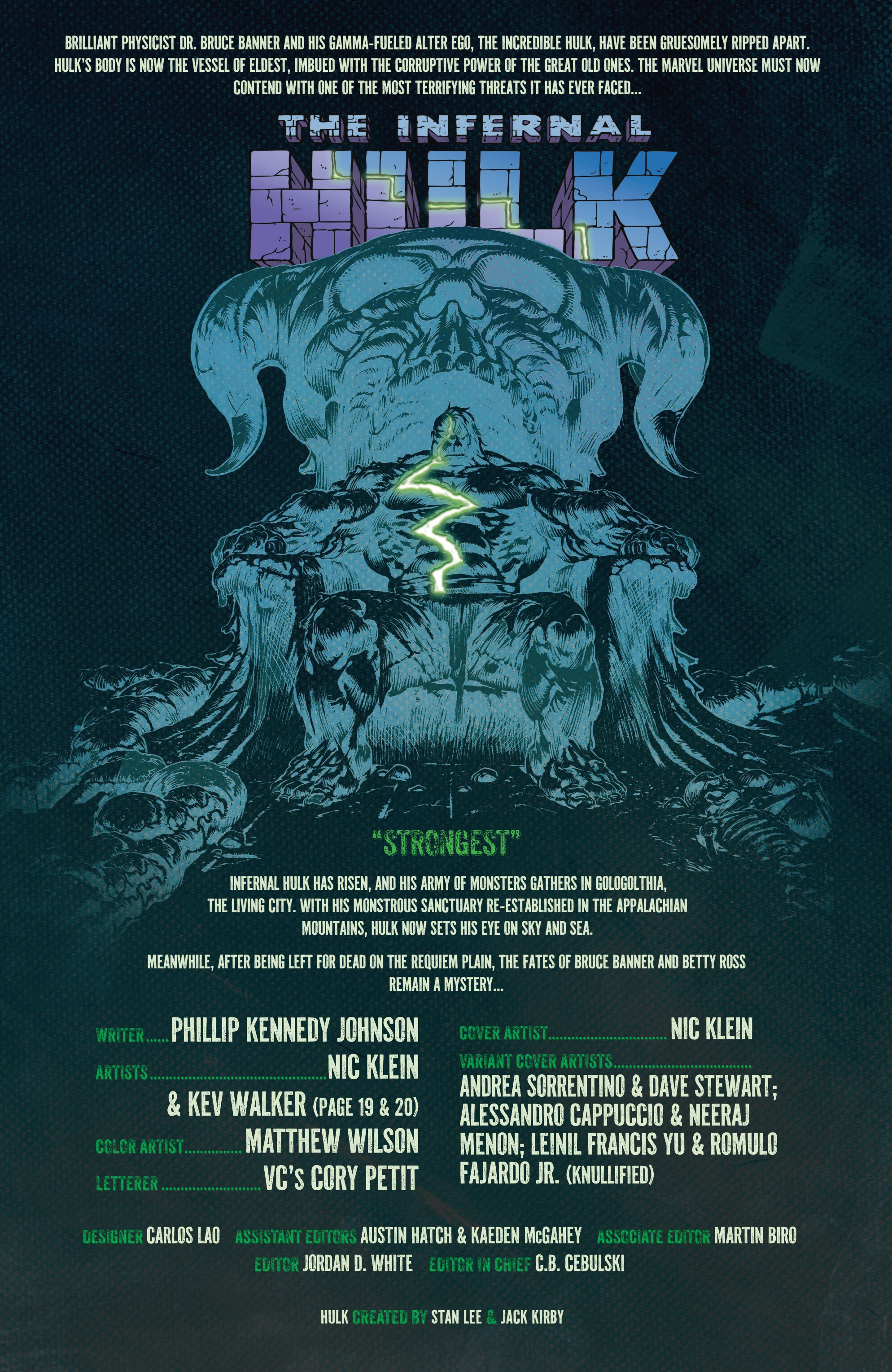 >>151649200Infernal covers:The Infernal Hulk #2 Alessandro Cappuccio VariantThe Infernal Hulk #2 Leinil Francis Yu Knullified VariantThe Infernal Hulk #2 2nd PrintingThe Infernal Hulk #2 2nd Printing 1:25 Andrea Sorrentino Virgin VariantThe Infernal Hulk #2 1:25 Andrea Sorrentino VariantThe Infernal Hulk #2 1:50 Alessandro Cappuccio Virgin Variant>What happened to Bruce Banner in that cave? As the monsters' war on humanity rages across land and sea, Bruce Banner and Betty Ross have finally found their life of quiet normalcy, free from their past and the threat of the Infernal Hulk... or so they think. Is Banner really free? How long can they hide as the world burns down... and what happens when their nightmares find them? Guest-starring IRON MAN, the fate of Bruce Banner is revealed in this pivotal issue!>INTO THE HULKSCAPEAs the Infernal Hulk's Age of Monsters rages across the globe, the INCREDIBLE Hulk is effectively dead, his consciousness locked away in the brutal depths of the Hulkscape. But Hulk discovers he's not alone... his previous alters are locked in with him, as well as the countless victims and vessels of ELDEST. Could one of the Hulks possess the key to taking back their stolen body? And could they have a way to communicate with their long-lost companion CHARLIE?