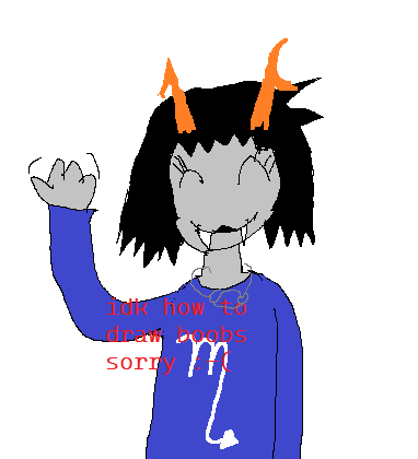 >>151660485Vriska once she realizes that, as long as she doesnt count her horns, John is half an inch taller than her.