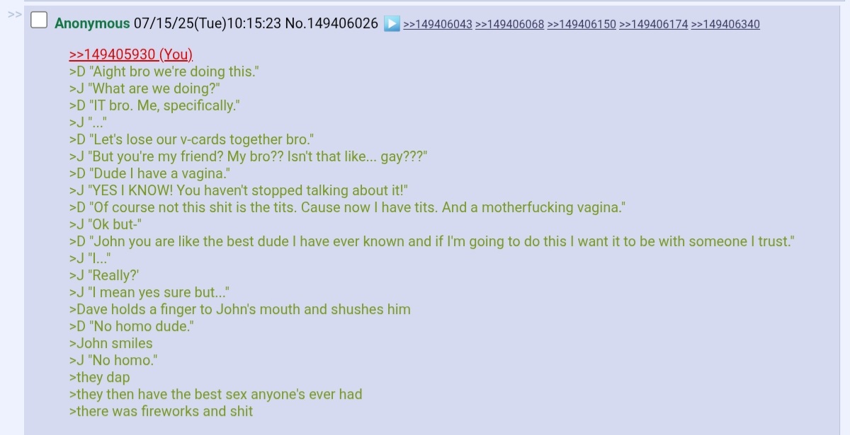 >>151685145aye homie let me get a little taste of your nutsack before the thread 404s