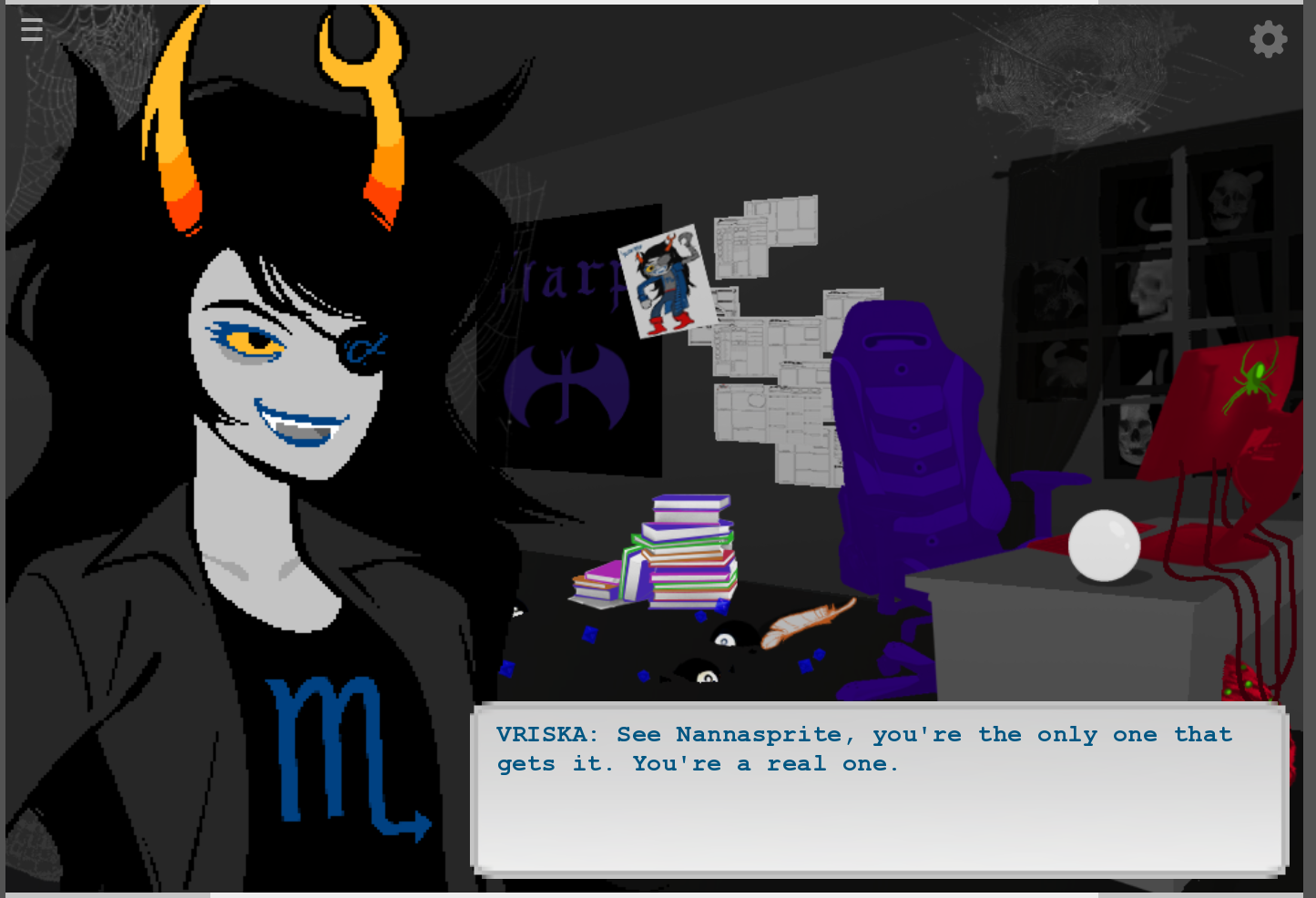 >>151679267>and it was nice seeing her grow up during itMaybe im just being sour for sport but this would have been better if it wasnt the fourth fucking time Vriska's "arc" comes to an end