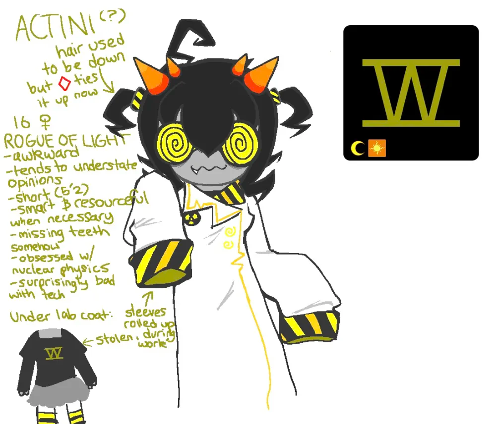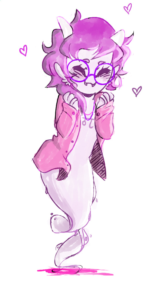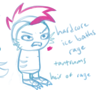 >>151700104out of the concepts I've doodled this guy is my favoritehe's a fuchsia-blood that's prone to tantrums. he's obsessed with being HARDCORE and lives in the arctic with his walrus/polarbear lusus and takes hardcore ice baths every day. despite all this, he's a terrible swimmer- requiring flippers- and it pisses him off. he's not too happy with his team taking their sburb session slow and steady instead of hitting the ground running right off the bat. that said. while he's too "busy" for "sappy shit" like relationships, he's still a good friend. when he's not too busy having 2 active braincells that isI want to do something with his concept someday