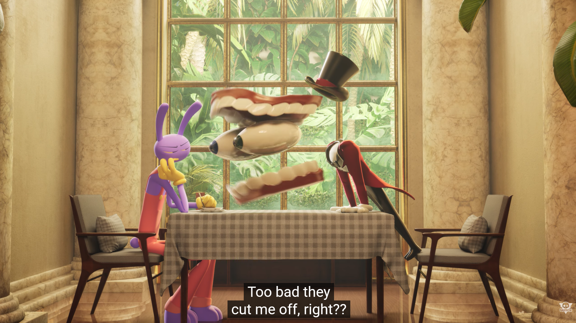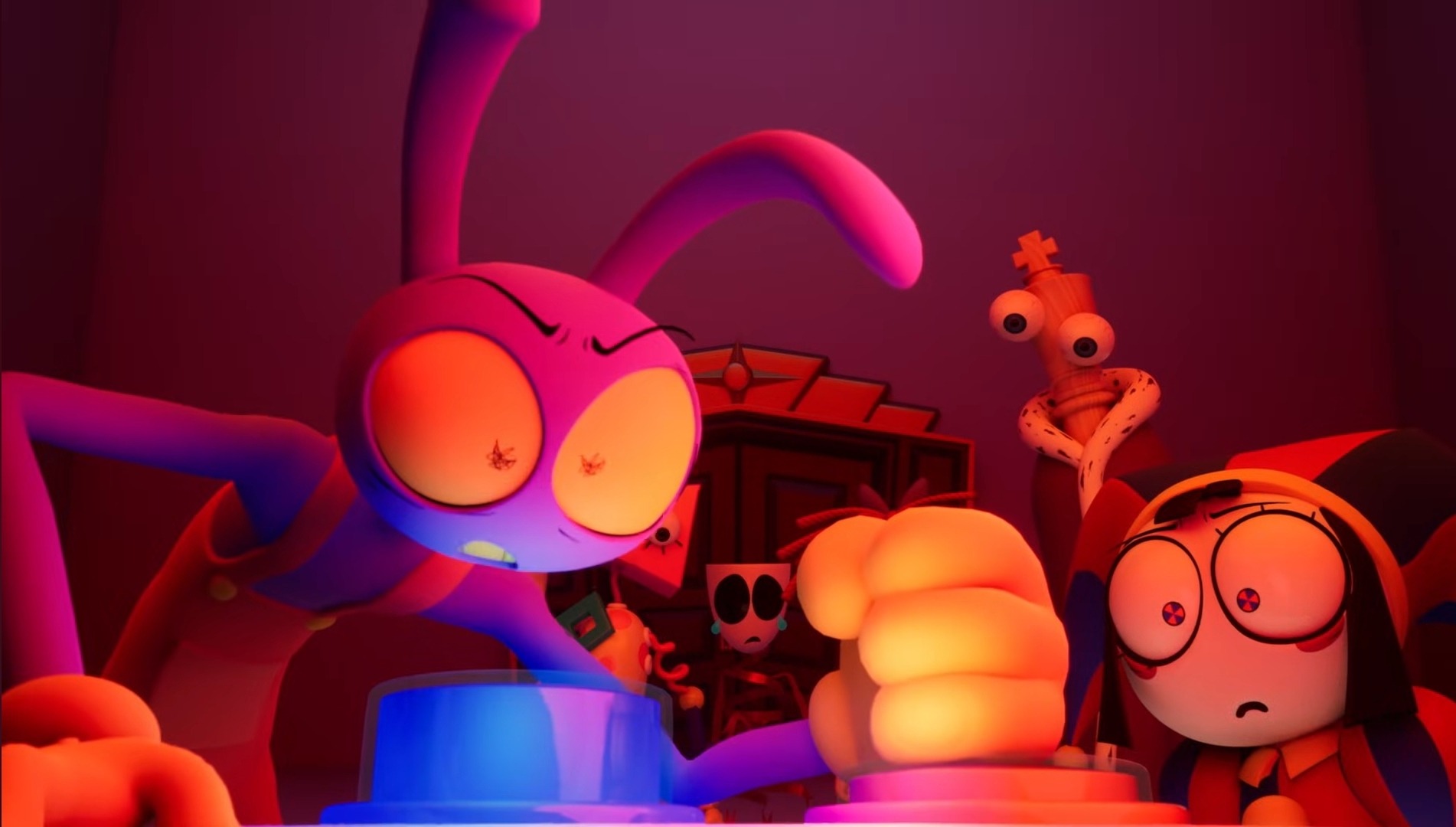 Technically, we did learn some plot things, though mainly about abstraction >now everyone knows that Caine can and has actively fucked with their memories>too much fucking with it is what causes abstractions, with Kinger figuring out that the first abstraction, Scratch was likely because of Caine now>Jax only started getting the abstraction feelings after Caine messed with his mind in the Choose Your Own Adventure path>Gangle only had an abstraction moment when she was wearing a personality altering mask that was fucking with her mask, but pulled it off in time