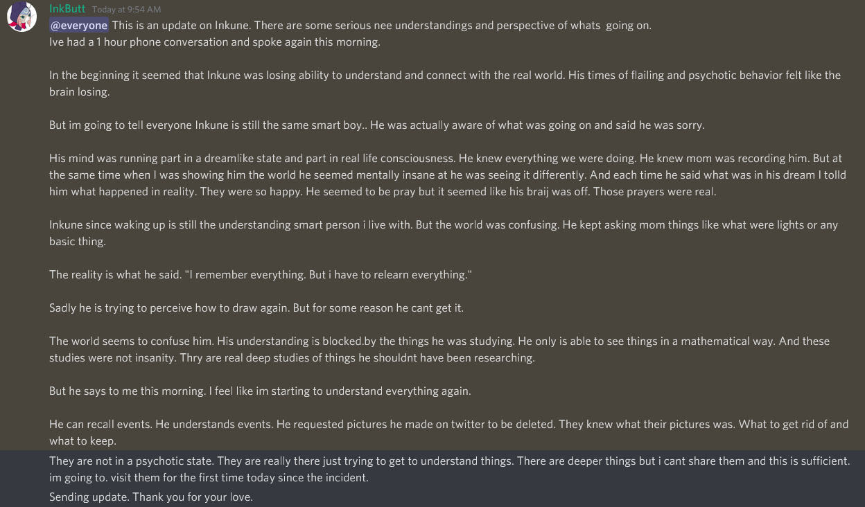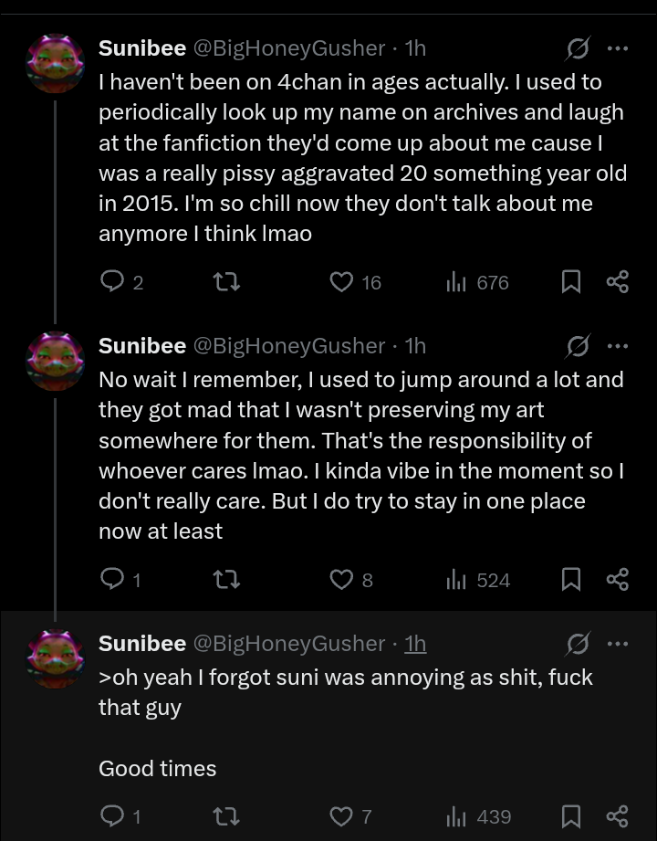 >>151705425Yeah, it was the other RPer, but he leaked it on an alt account, so whatever they really run under is up in the air. I'm still wondering why Jinu got the bright idea to do it. Not because of the content (fucked up, but no one was hurt) but because, in his words, he went through a breakup. Like no, don't use porn as cope. Also his scat alt was just privated, not really hidden because of one letter off, but he did make good on the promise of nuking the account. I have no access, but he probably just draws scat for a hidden server now.