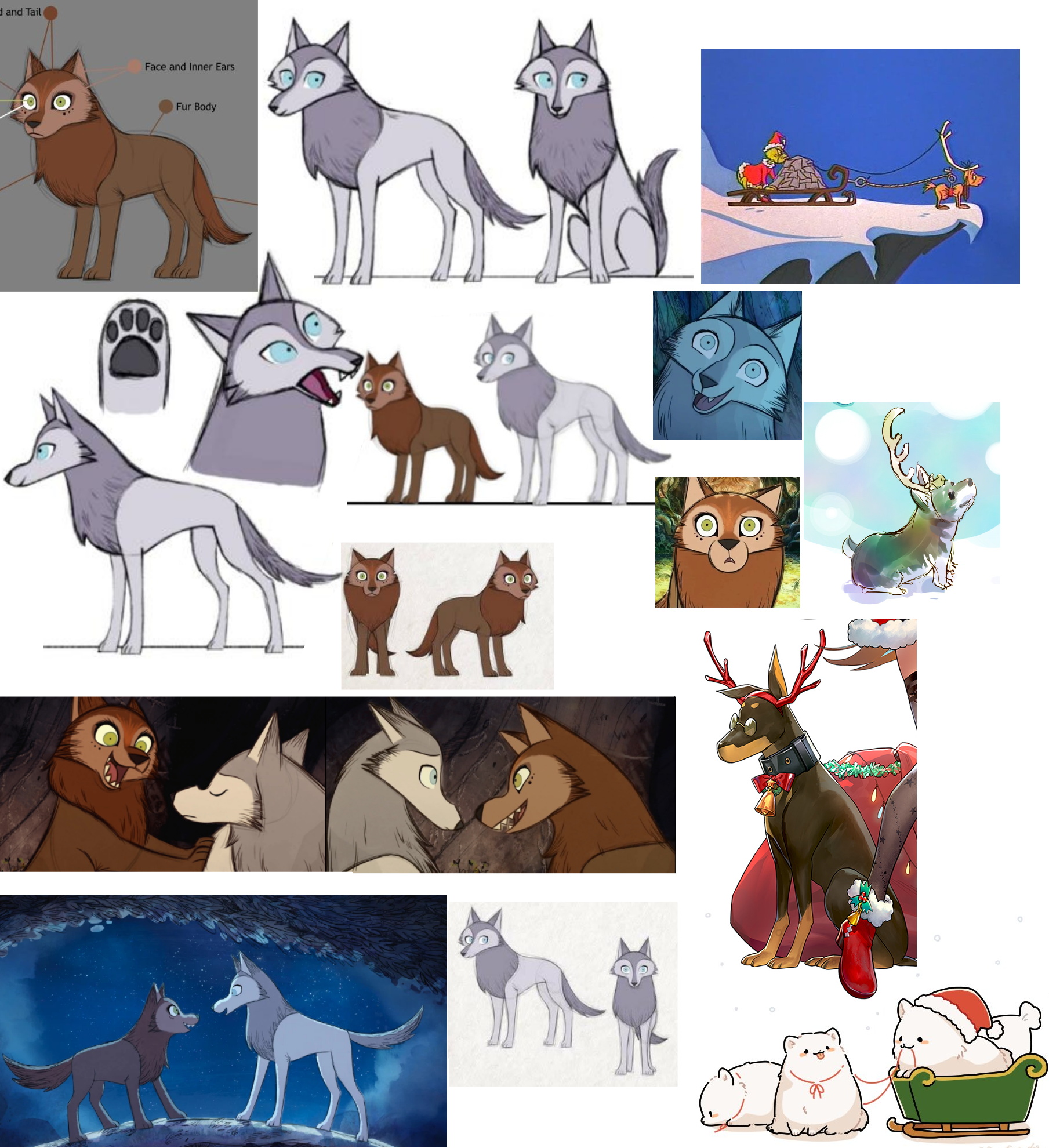 Requesting Robyn and Mebh, in wolf form, wearing fake antlers and harnessed to a Santa Sleigh.Going for a "this is another fine mess you've gotten us into" shenanigans feel.