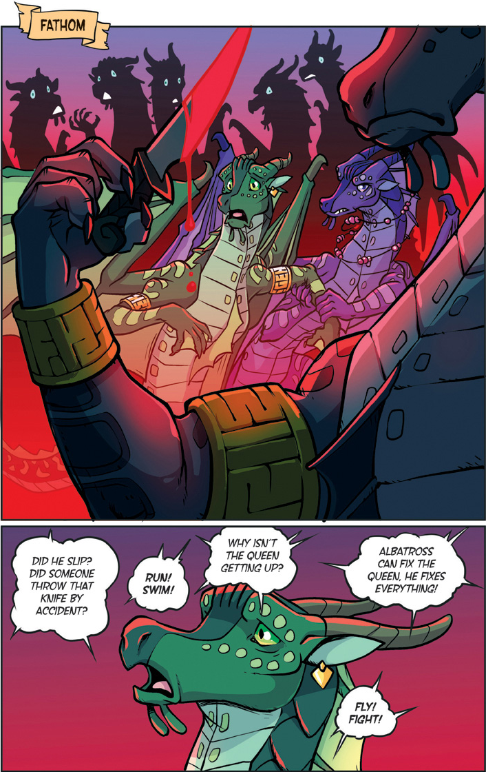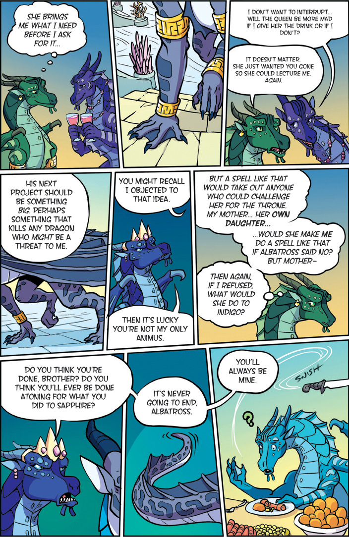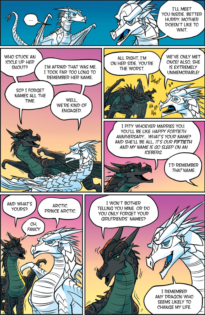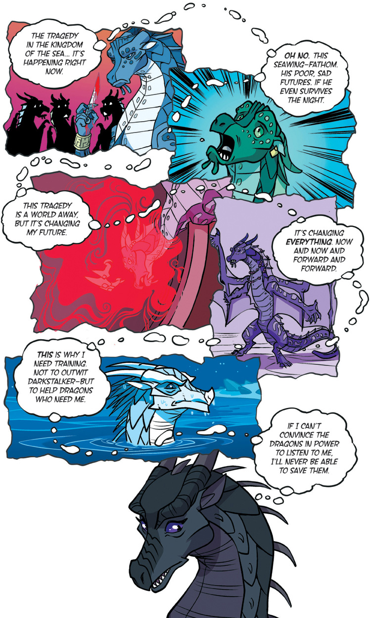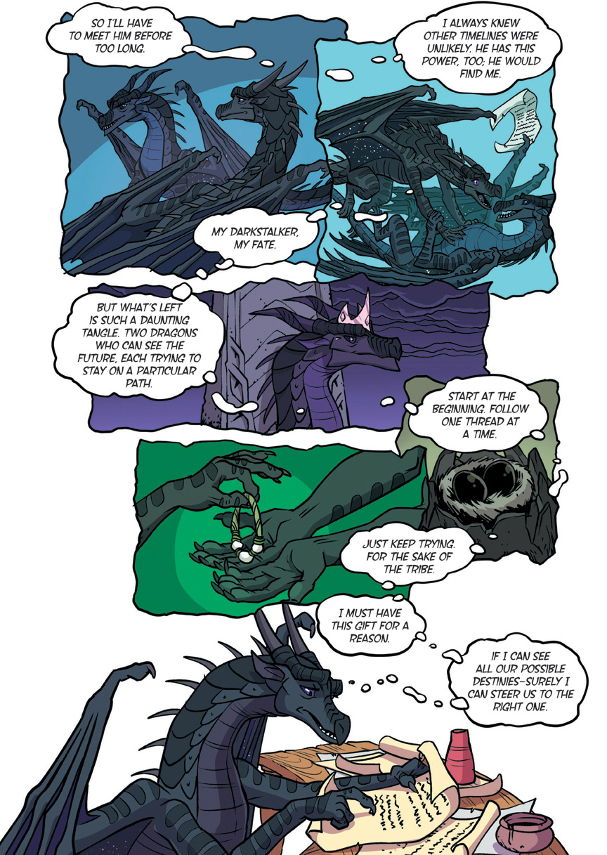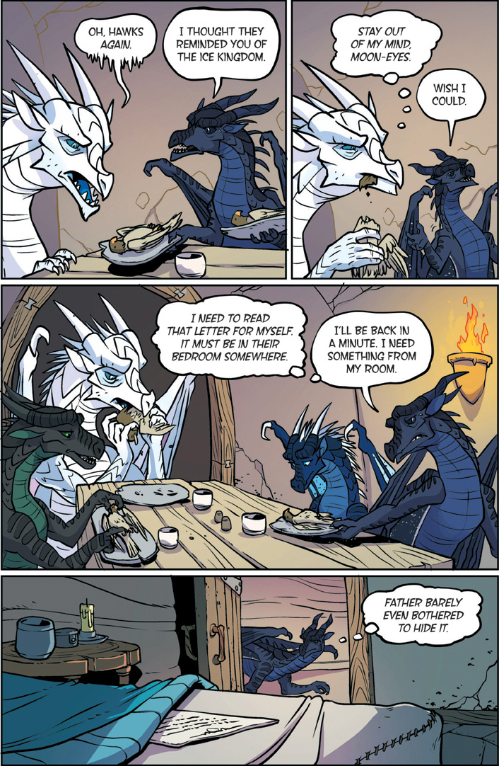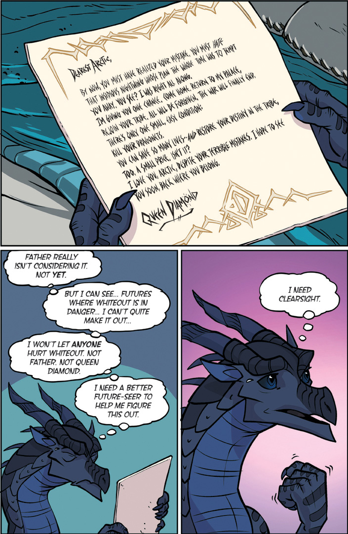 Also known as "The YA dragon books/comics for kids to young to remember what warrior cats was." Well we're here. This is a big one. Darkstalker is something of a big deal as WoF books go. Widely considered the 'best' book of the series with three POVs for a mid-arc prequel dropped before the Talons of power which by some good juggling on the WoF team's part is set to release right after this. The art is by one Jake Parker who was brought in since Mike has his plate full doing the main series. But enough prattling about the Scavengers, this is Darkstalker, and now you get to experience it as a comic.THREE DRAGONS. ONE DESTINY.THIS IS THE BEGINNING... OF THE END...In the SeaWing kingdom, a young prince learns he is an animus capable of wonderful magic that comes with a terrible price.In the mind of a Nightwing dragonet, a thousand futures unfold and almost all of them, she knows, lead to disaster and destruction.And under three full moons and the watchful eyes of his NightWing mother and IceWing father, the most powerful dragon Pyrhhia will ever know is clawing his way out of his egg: Darkstalker, the dragon who will change the world forever.Long before the SandWing war, lifetimes before the Dragonet Prophecy. darkness is born.>-Quote on BackcoverRegular words of introduction do not suffice for...DARKSTALKERhttps://www.youtube.com/watch?v=EUcrFKHMZ-k>Thread 1: "The dragonet prophecy" https://desuarchive.org/co/thread/129855279/>Thread 2: "The Lost Heir" https://desuarchive.org/co/thread/129890926/>Thread 3: "The Hidden Kingdomhttps://desuarchive.org/co/thread/129925480/>Thread 4: "The Dark Secret"https://desuarchive.org/co/thread/129954043/>Thread 5: "The Brightest Night" https://desuarchive.org/co/thread/129972905/>Thread 6: "Moon Rising"https://desuarchive.org/co/thread/134713773/>Thread 7: "Winter Turning"https://desuarchive.org/co/thread/141669409/>Thread 8: "Escaping peril"https://desuarchive.org/co/thread/146924673/