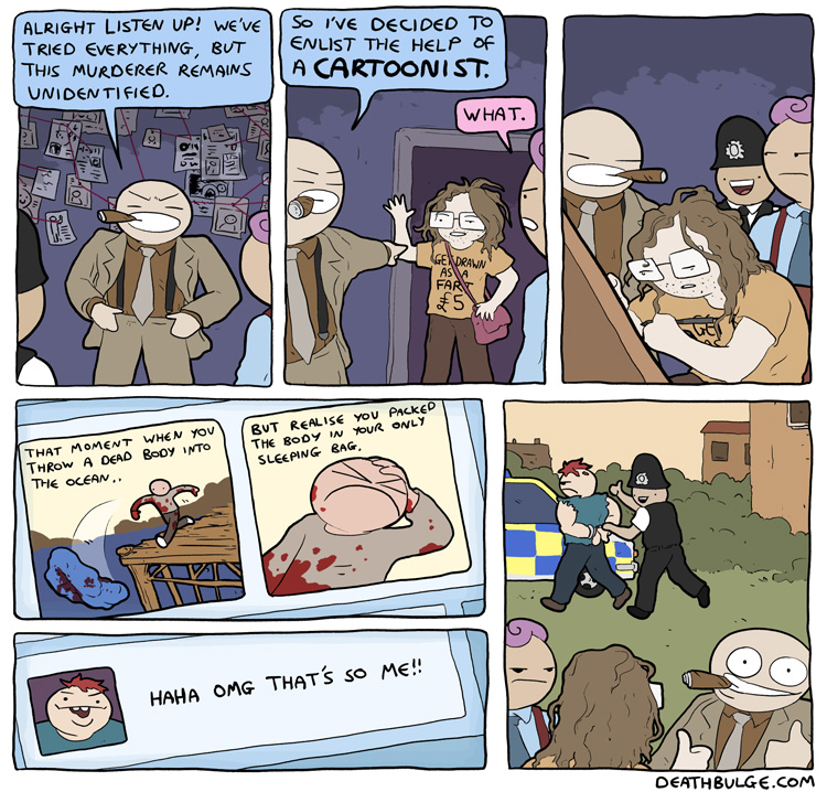 alt text:>Message to potential murderers out there: This murder comic is NOT a bait to attract and identify you. I did NOT land a detective gig for real after that last comic. Please continue with your incriminating social media comments.