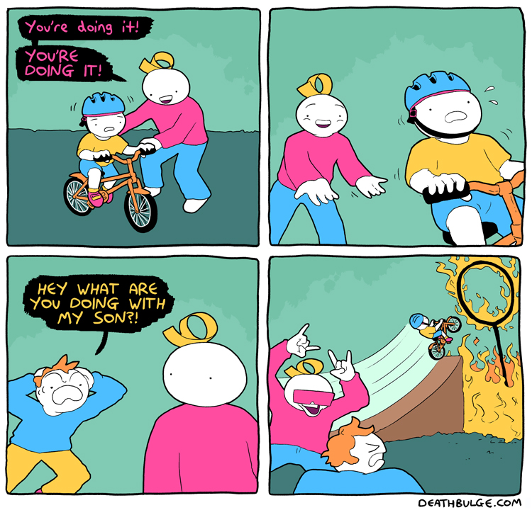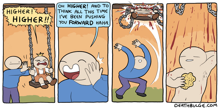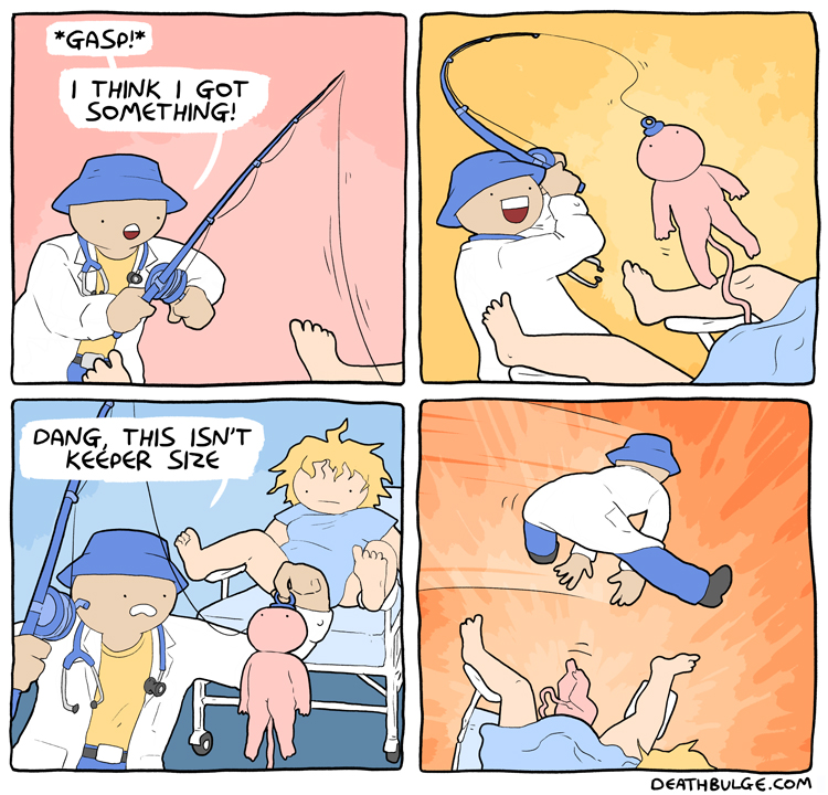 https://www.patreon.com/deathbulgeThis one is in part the author advertising his new (at that time) patreon. So I linked it as well to keep the vibe.It doesn't actually point directly to the patreon button on his website:http://deathbulge.com/comics/313I tried looking at archives, and it may have always been like that. Not sure.anyways, alt text:>Why is that ladder in the development chamber? It was finished ages ago.