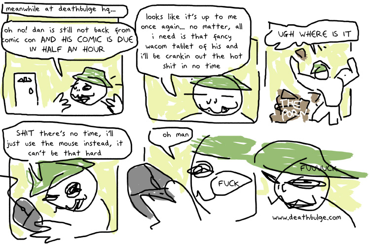 alt>THAT'S RIGHT. This is the first Deathbulge comic to be drawn completely digitally! Throwing up on paper was beginning to take its toll.